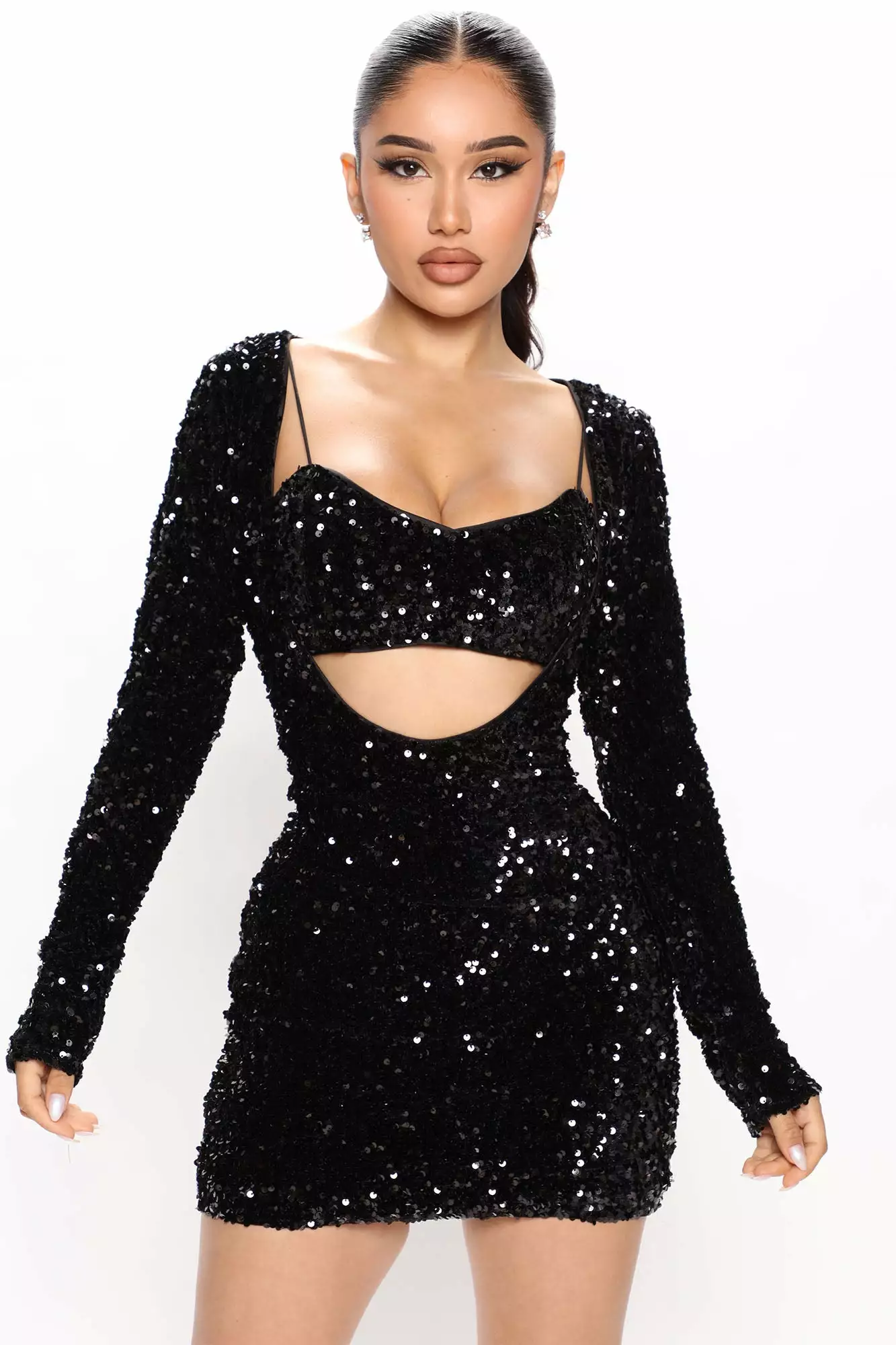 Fashion Nova Saturday Night Glam Sequin Dress Set – Black