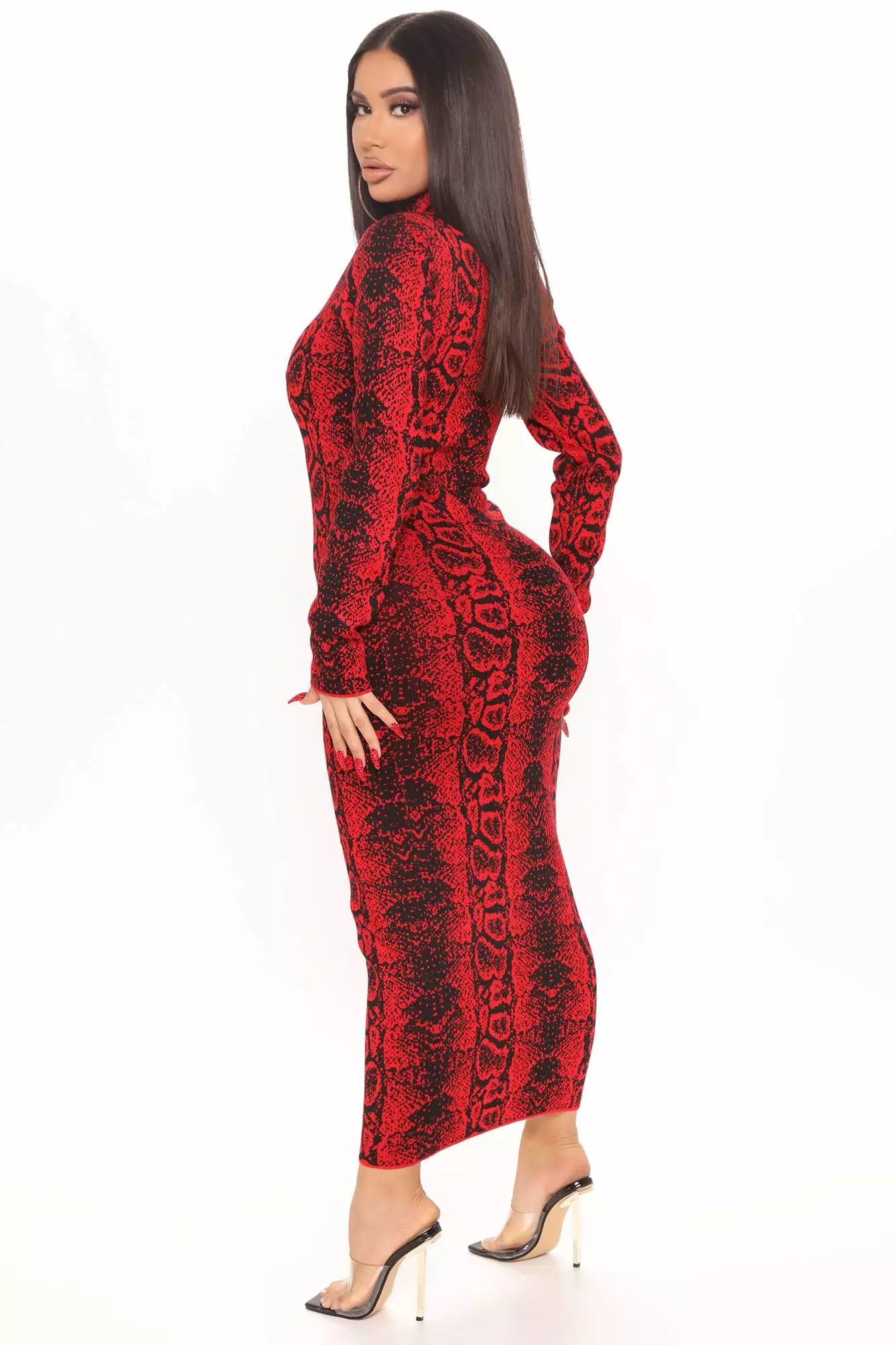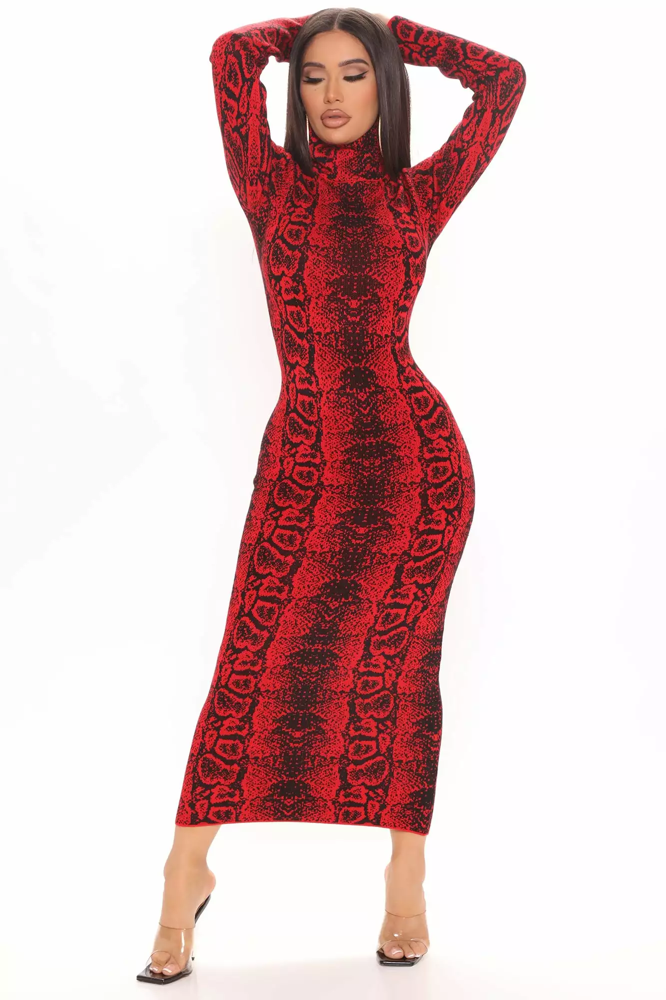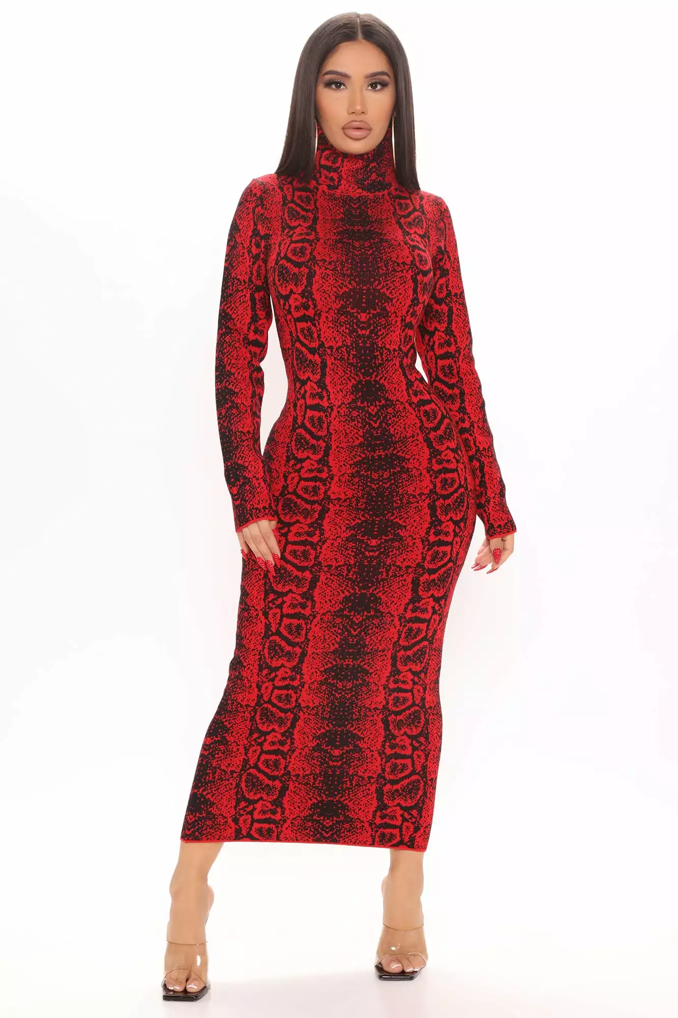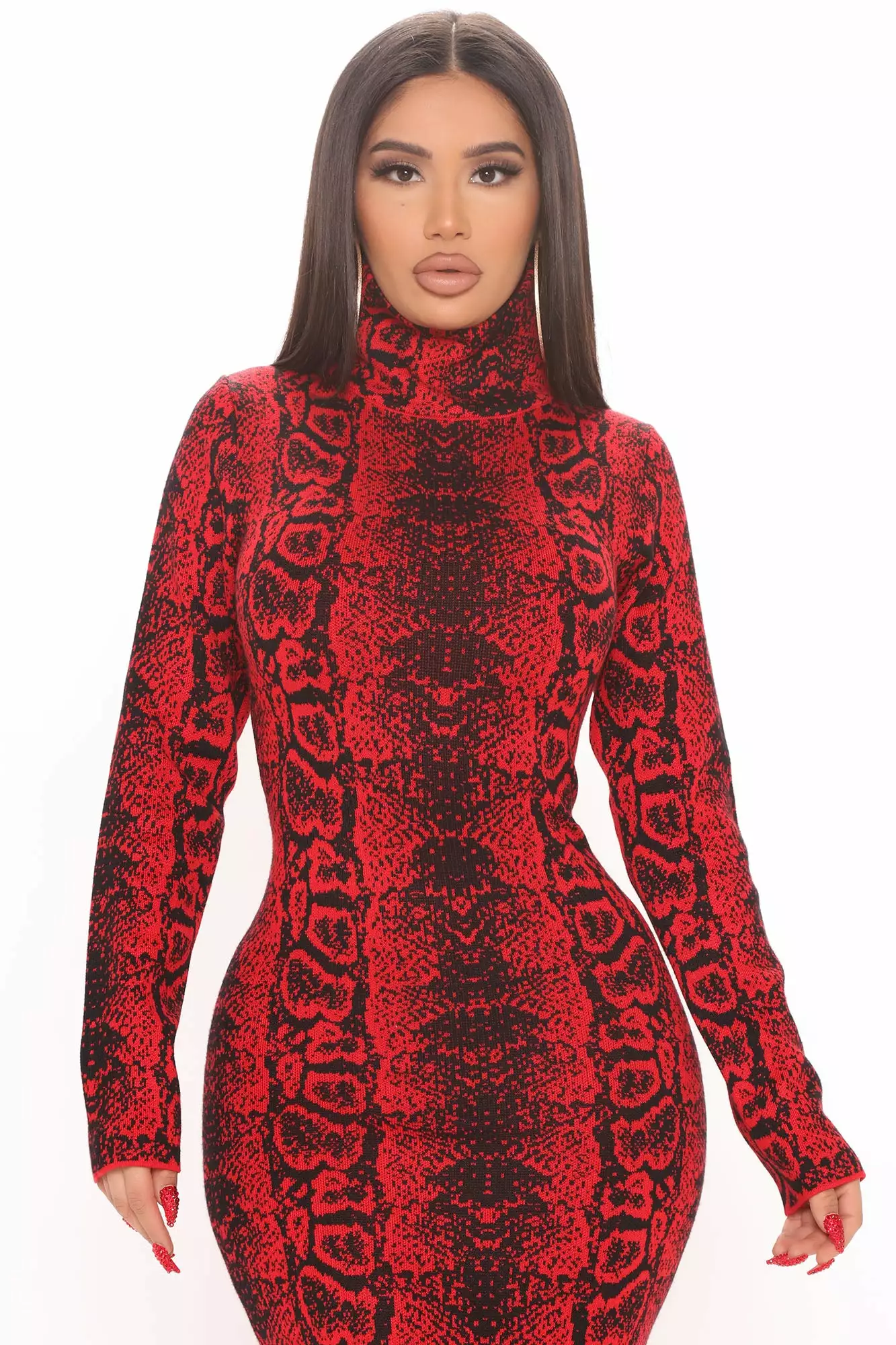 Fashion Nova Saucy Snake Sweater Midi Dress – Red/Black