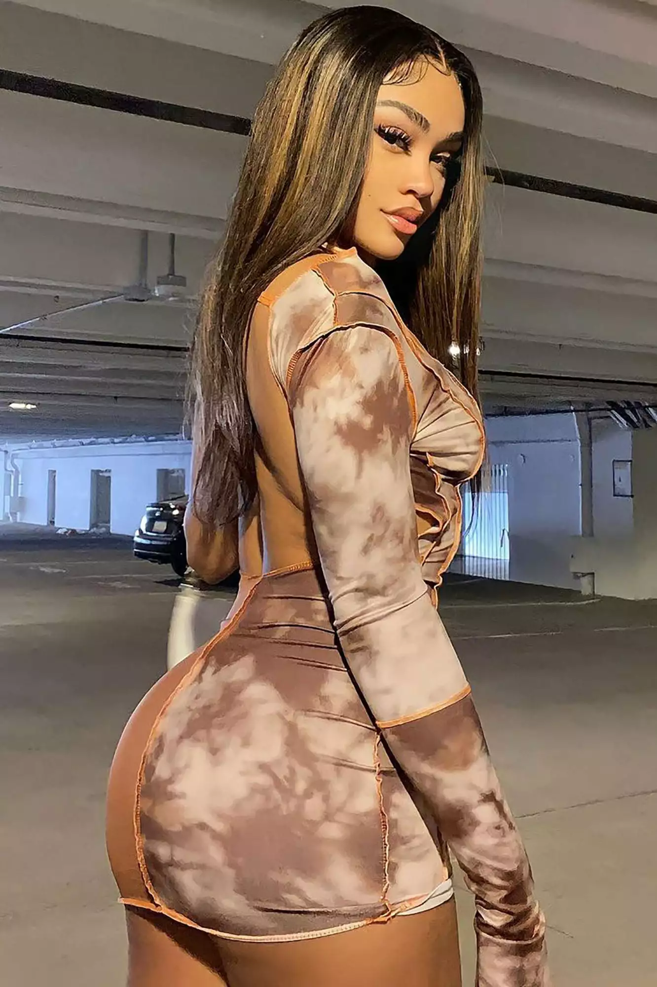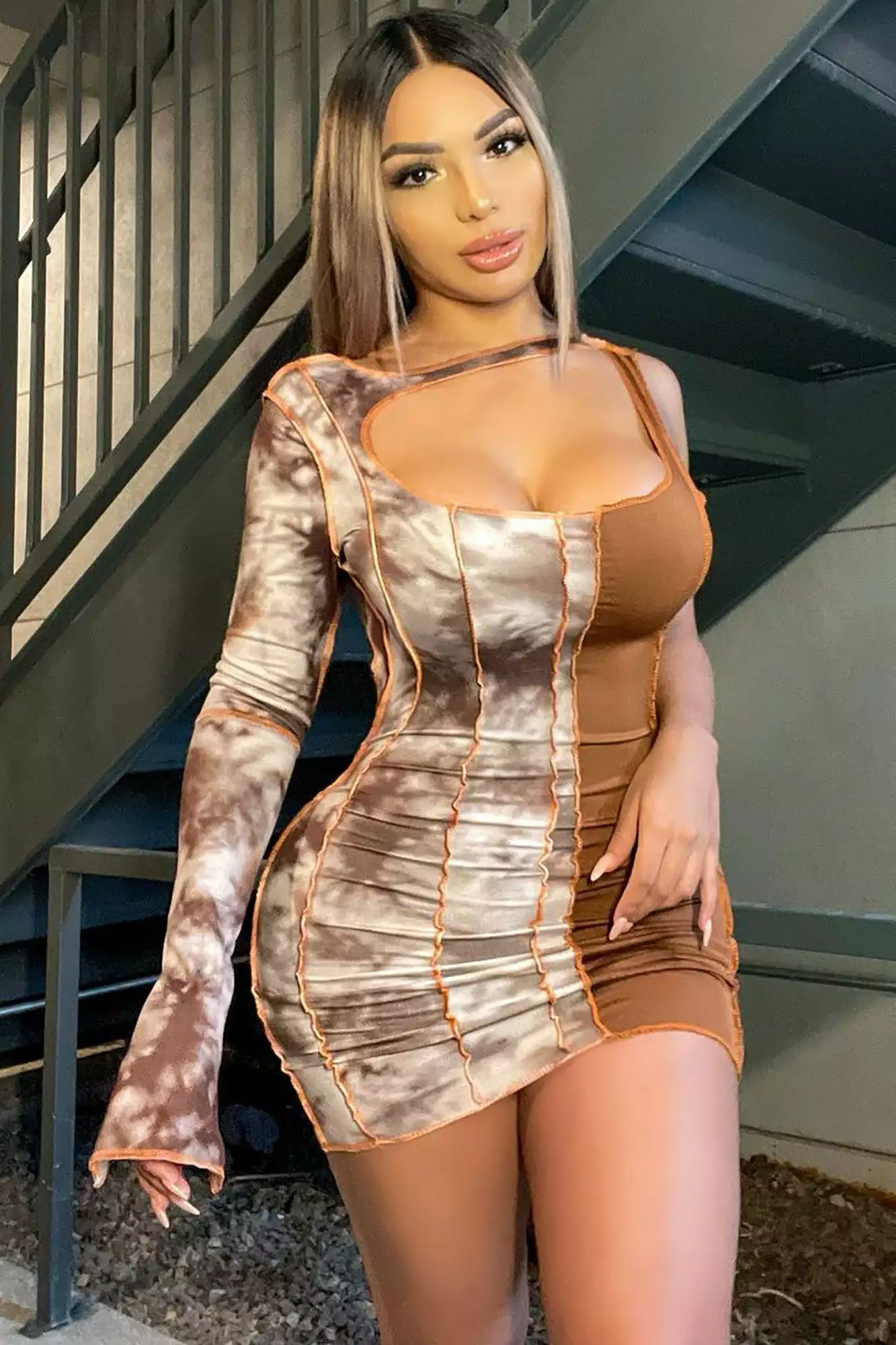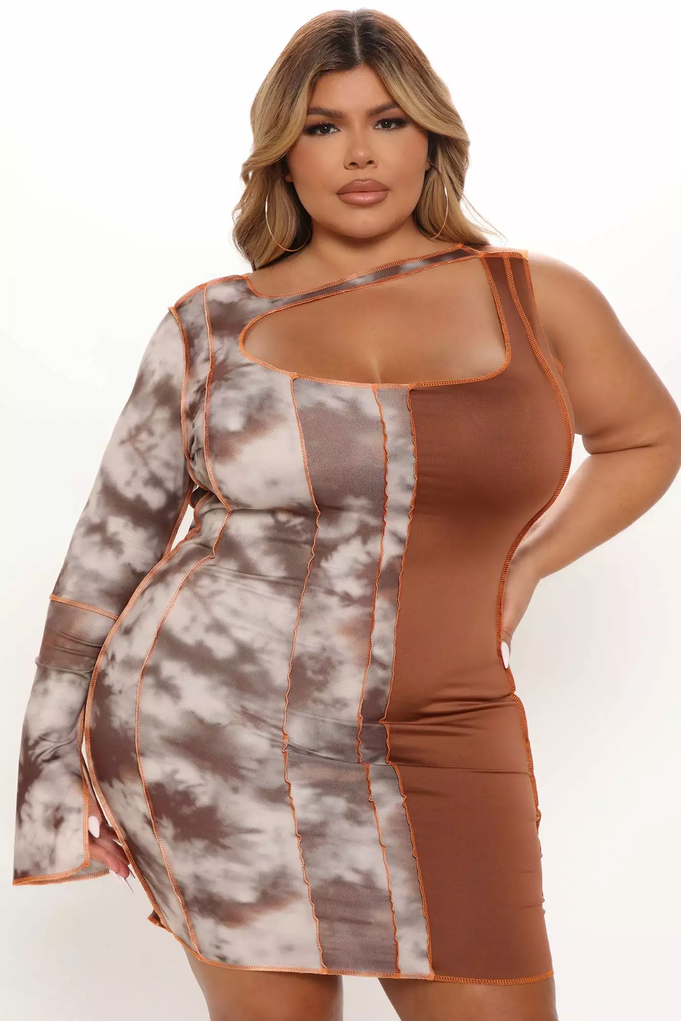 Fashion Nova Secret Obsession Mini Dress – Brown/combo