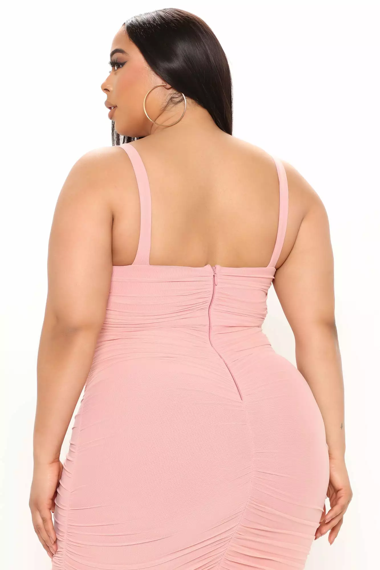 Fashion Nova Seeing You Later Ruched Bandage Midi Dress – Mauve
