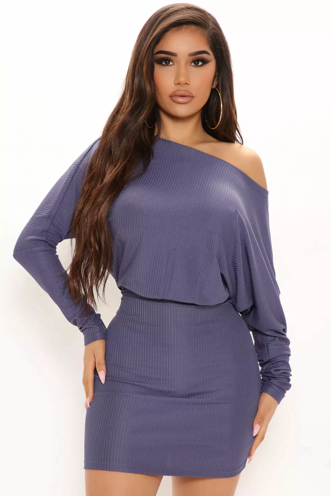 Fashion Nova Serena Off Shoulder Mini Dress – Navy