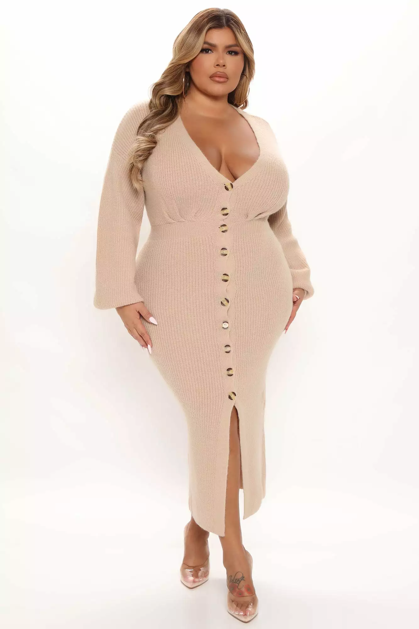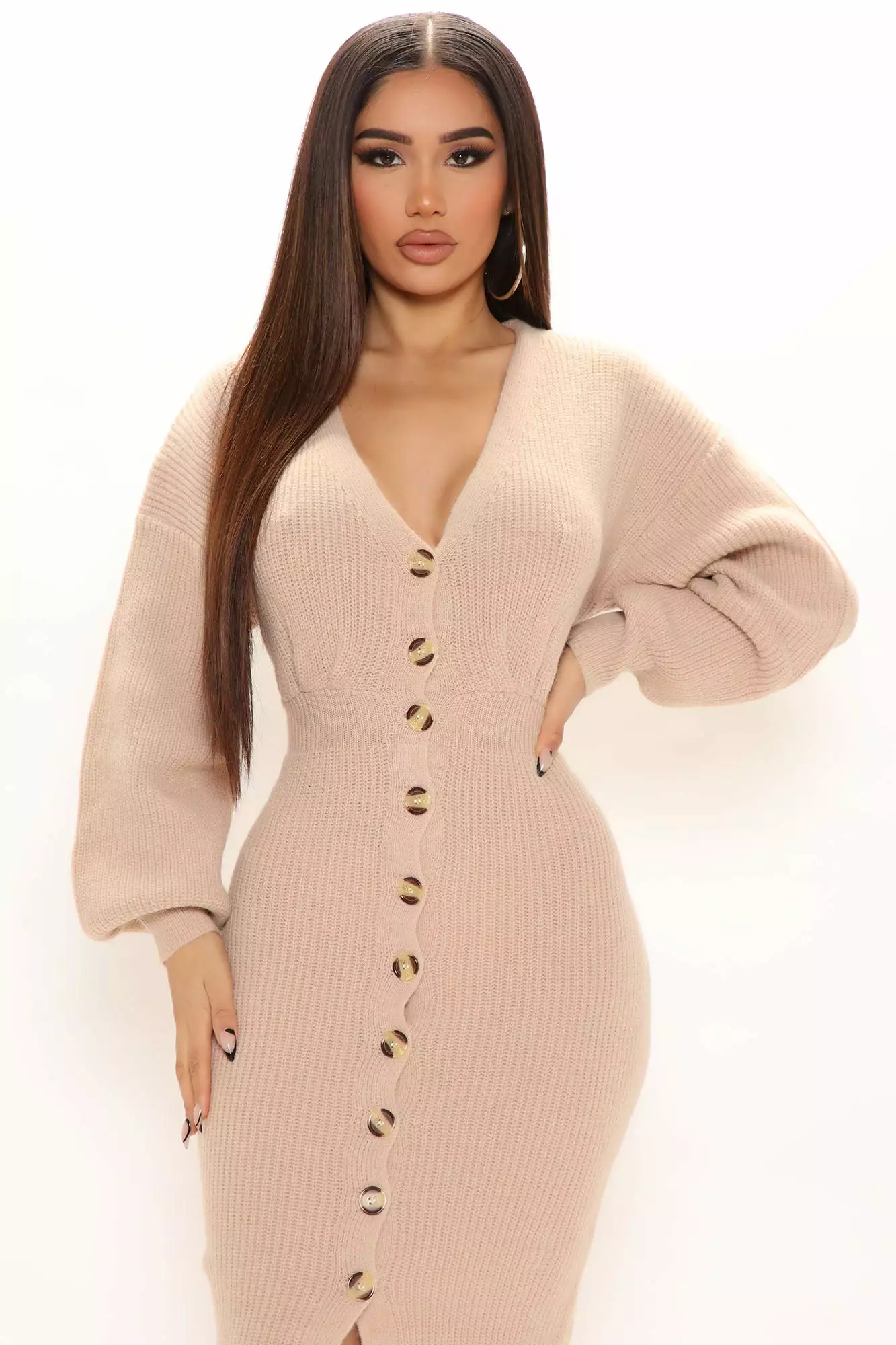 Fashion Nova Serenity Sweater Midi Dress – Taupe