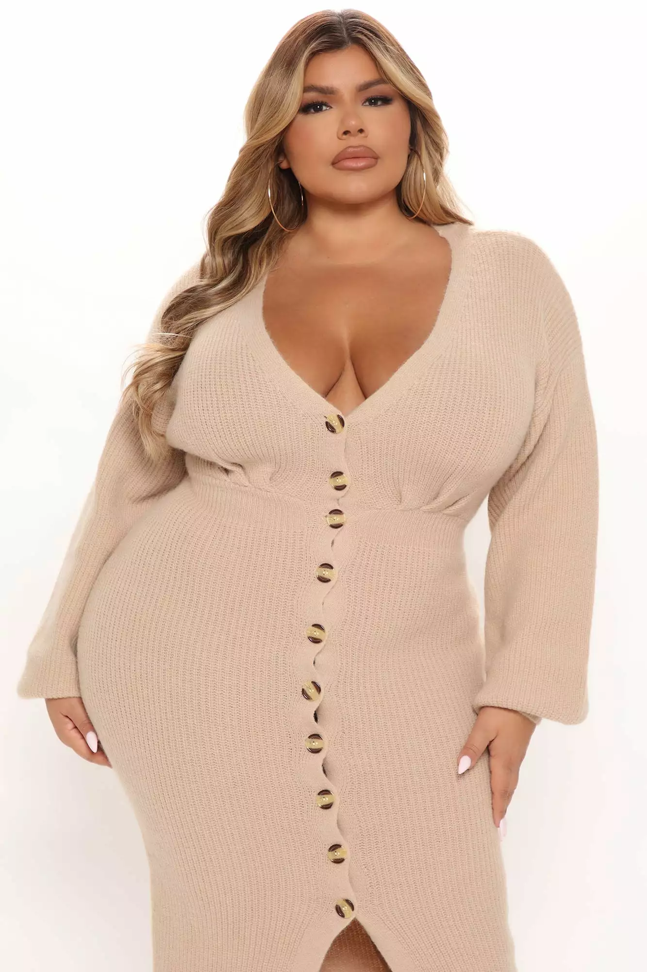 SKU: 6535892795516 Category: Midi Dresses Tags: All Promo, color:Taupe, ColorFam-Brown, detail:Button Front, Dresses, fabric:Sweater, fallbogo, falldresses, figure:Plus