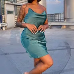 Fashion Nova Sandra Satin Mini Dress – Teal