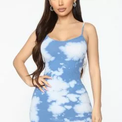 Fashion Nova Clearly Spotted Tie Dye Mini Dress – Blue