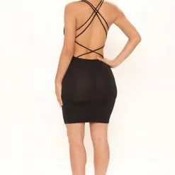 Fashion Nova Airenna Faux Leather Mini Dress – Black