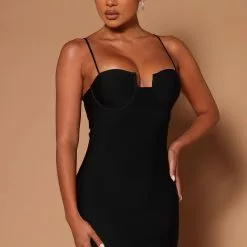 Fashion Nova Alaine Embellished Bandage Mini Dress – Black