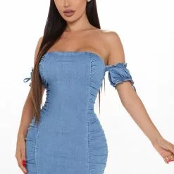 Fashion Nova Somebody Else Denim Mini Dress – Medium Wash