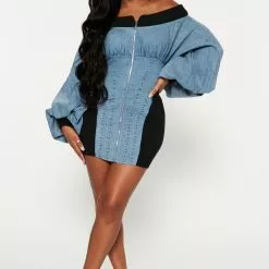 Fashion Nova Stassie Denim Mini Dress – Medium Wash