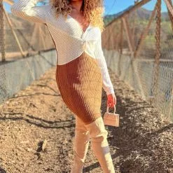 Fashion Nova Split It Sweater Mini Dress – Brown/combo