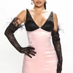 Fashion Nova Swan Lake Satin Mini Dress Set – Rose/Combo