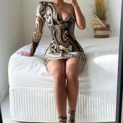 Fashion Nova Swirled Around Mini Dress – Brown Combo