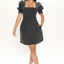 Fashion Nova The Moment Denim Babydoll Mini Dress – Black
