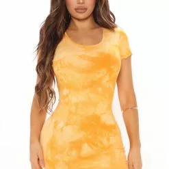 Fashion Nova Watch Me Tie Dye Mini Dress – Orange