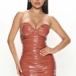 Fashion Nova Vinyl Collection Mini Dress – Brown