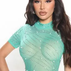Fashion Nova Vivi Embellished Mini Dress – Green