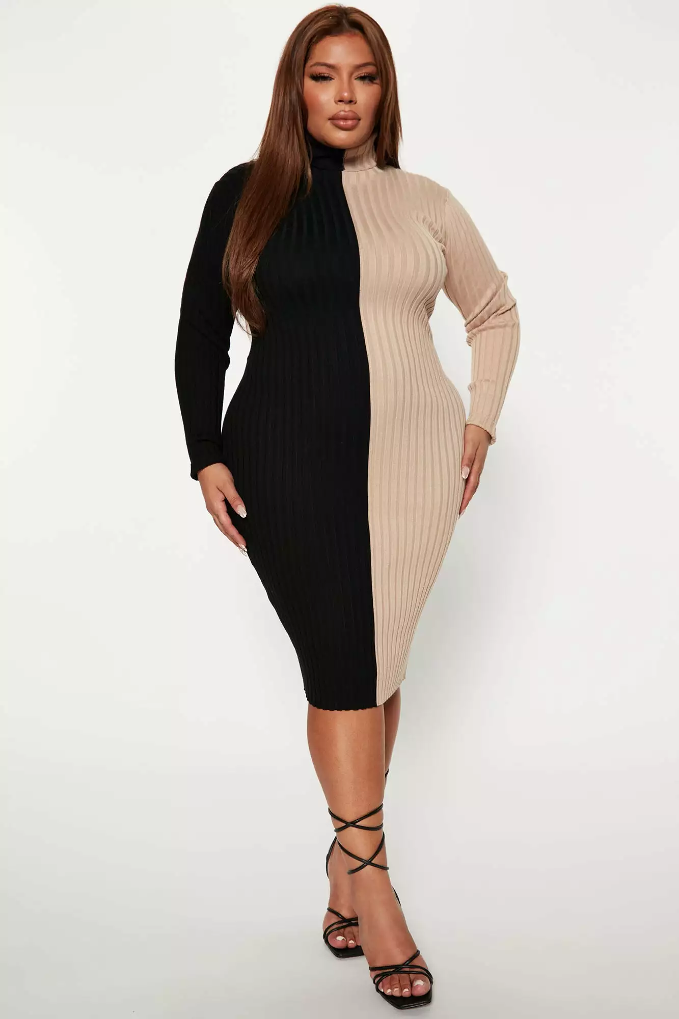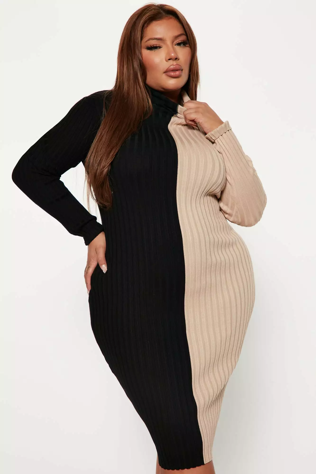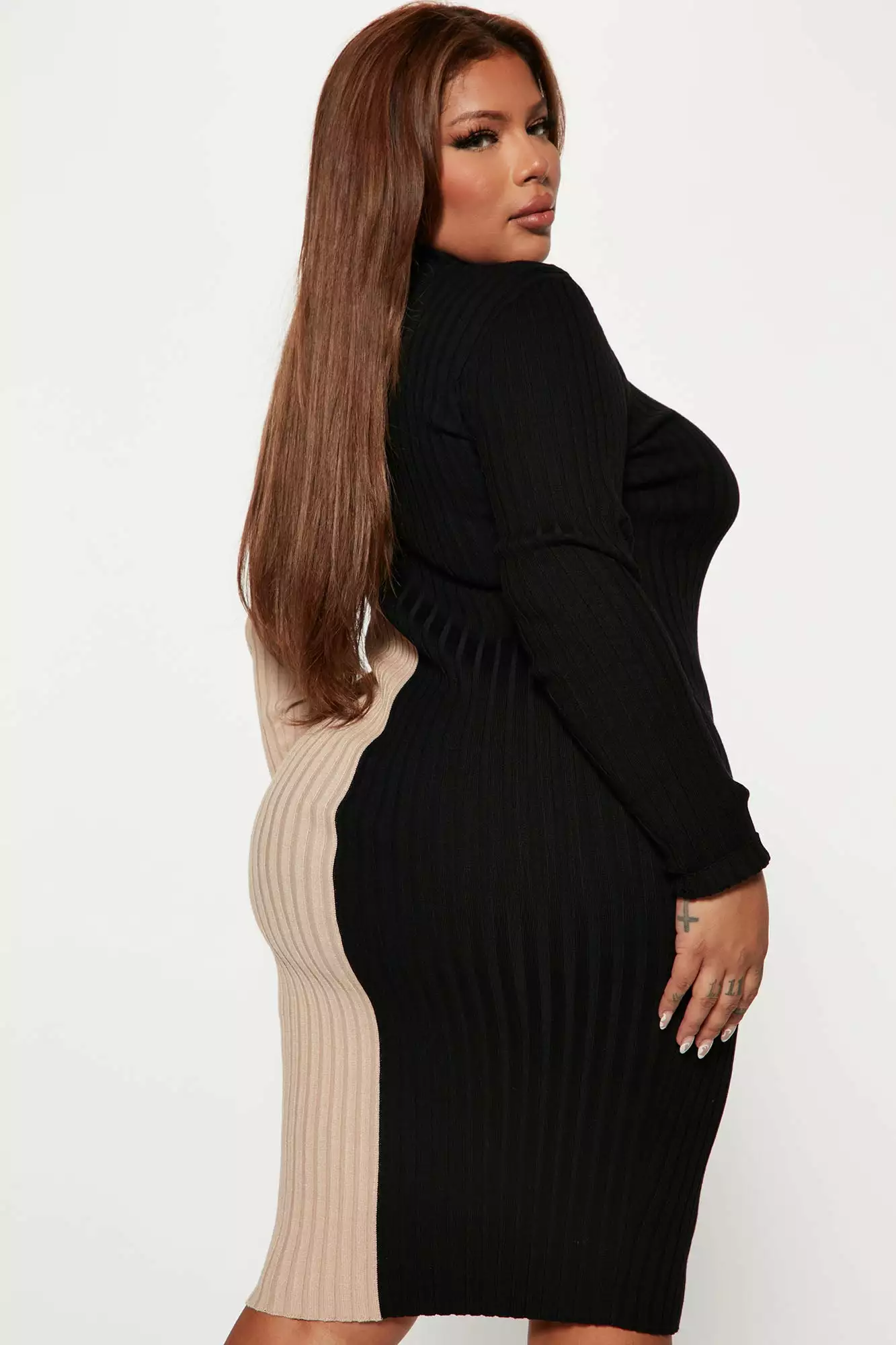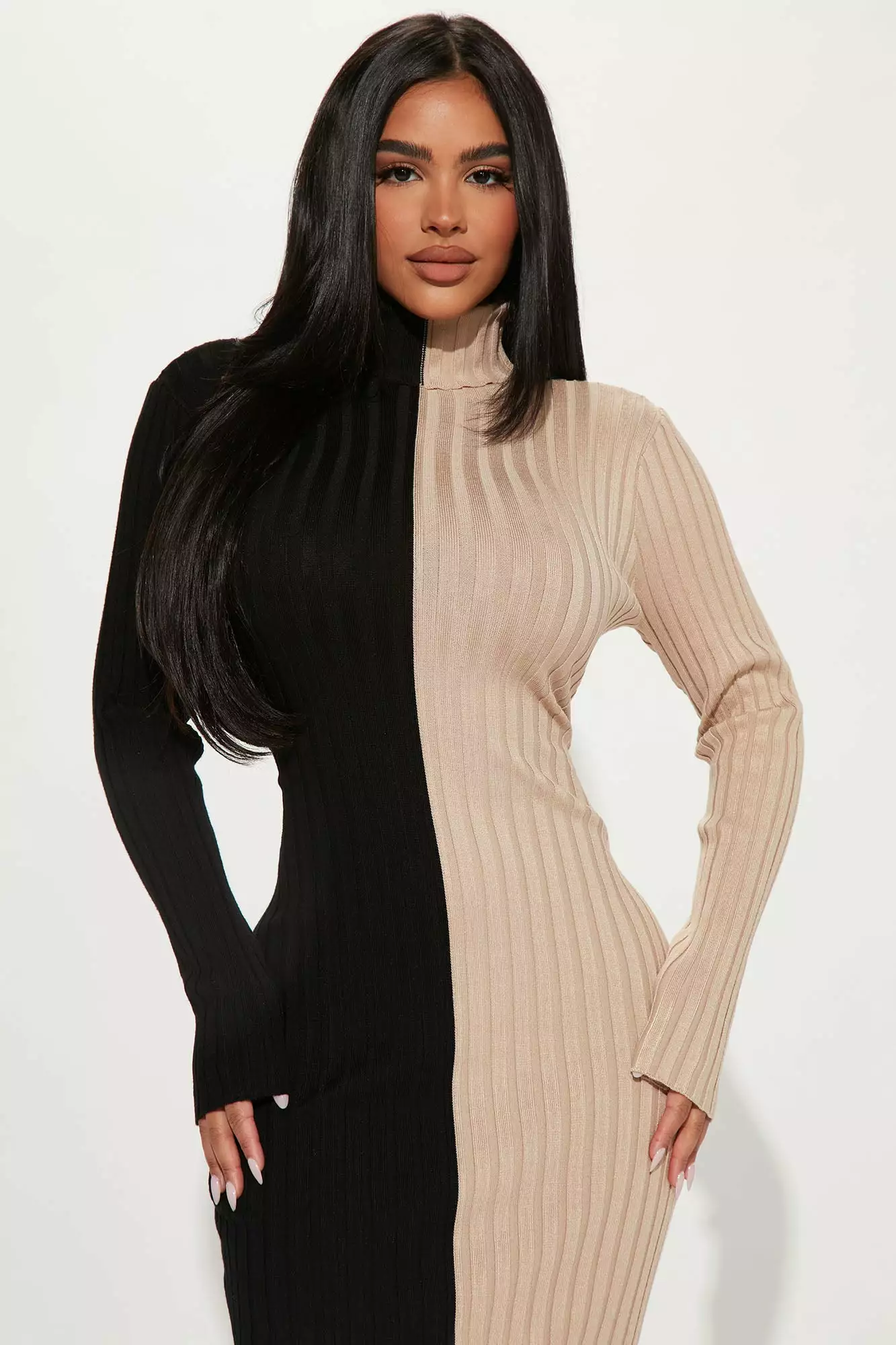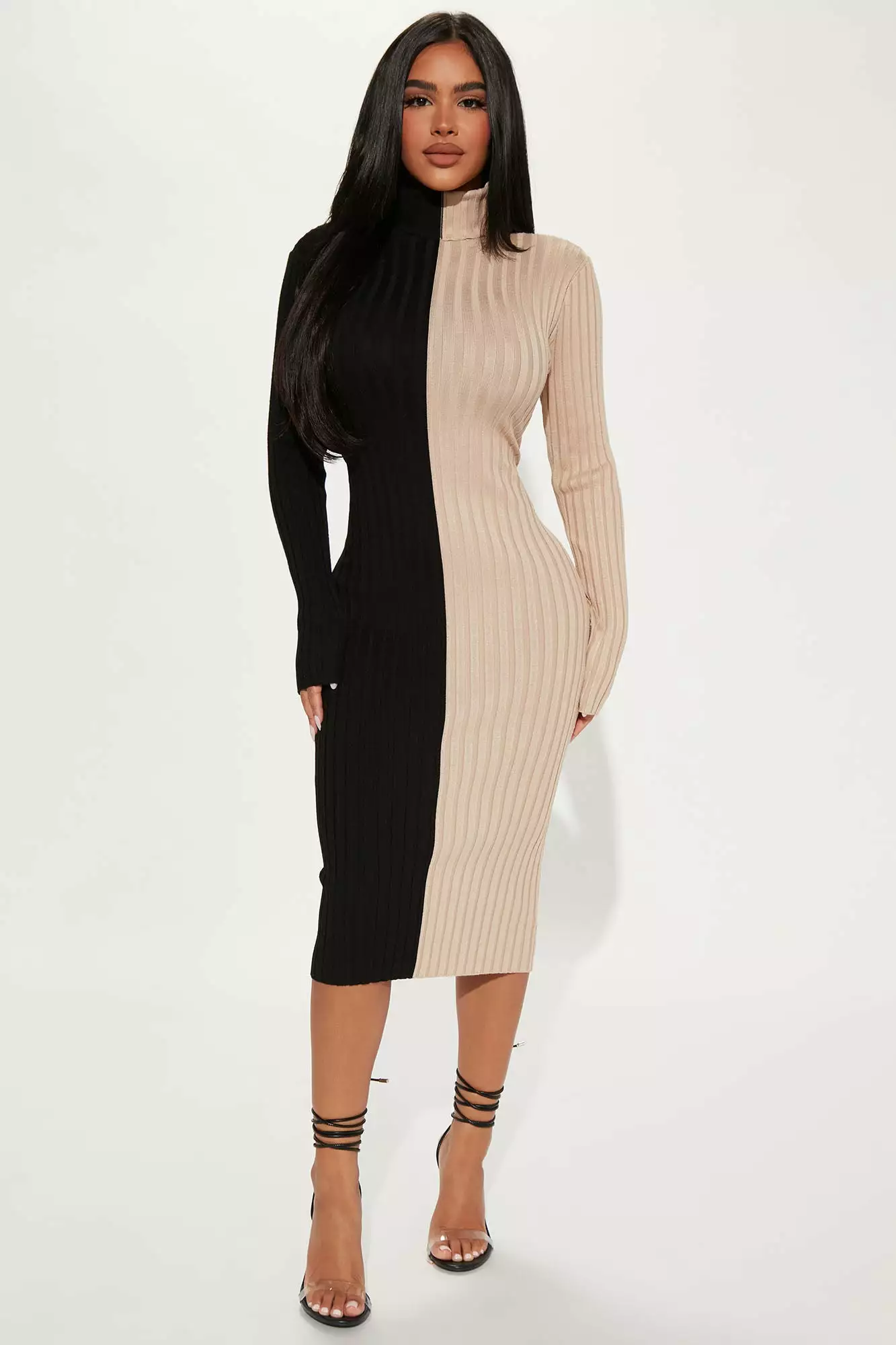 Fashion Nova Split Into Two Sweater Midi Dress – Black/combo