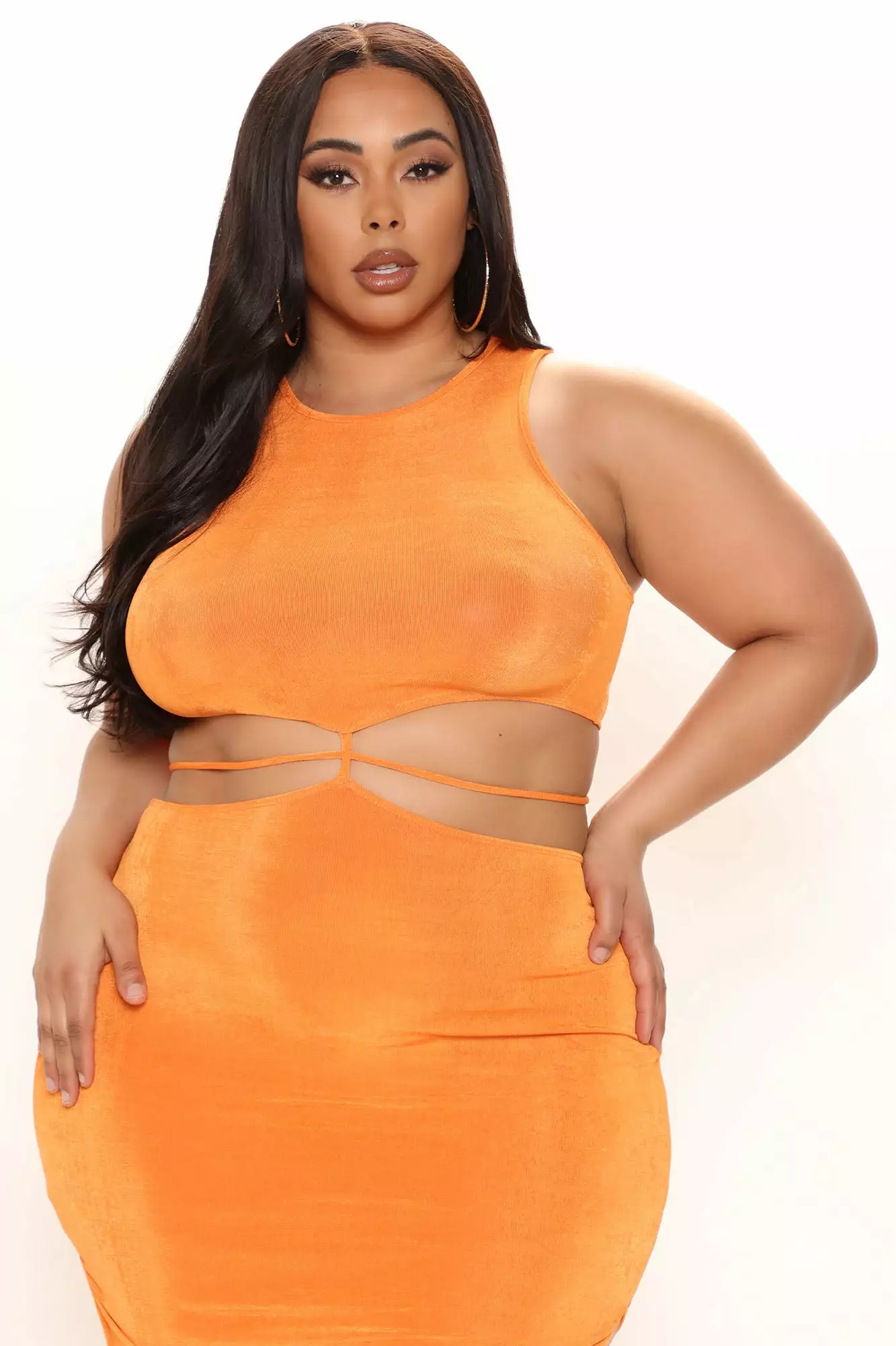Fashion Nova Start Off Right Slinky Midi Dress – Orange