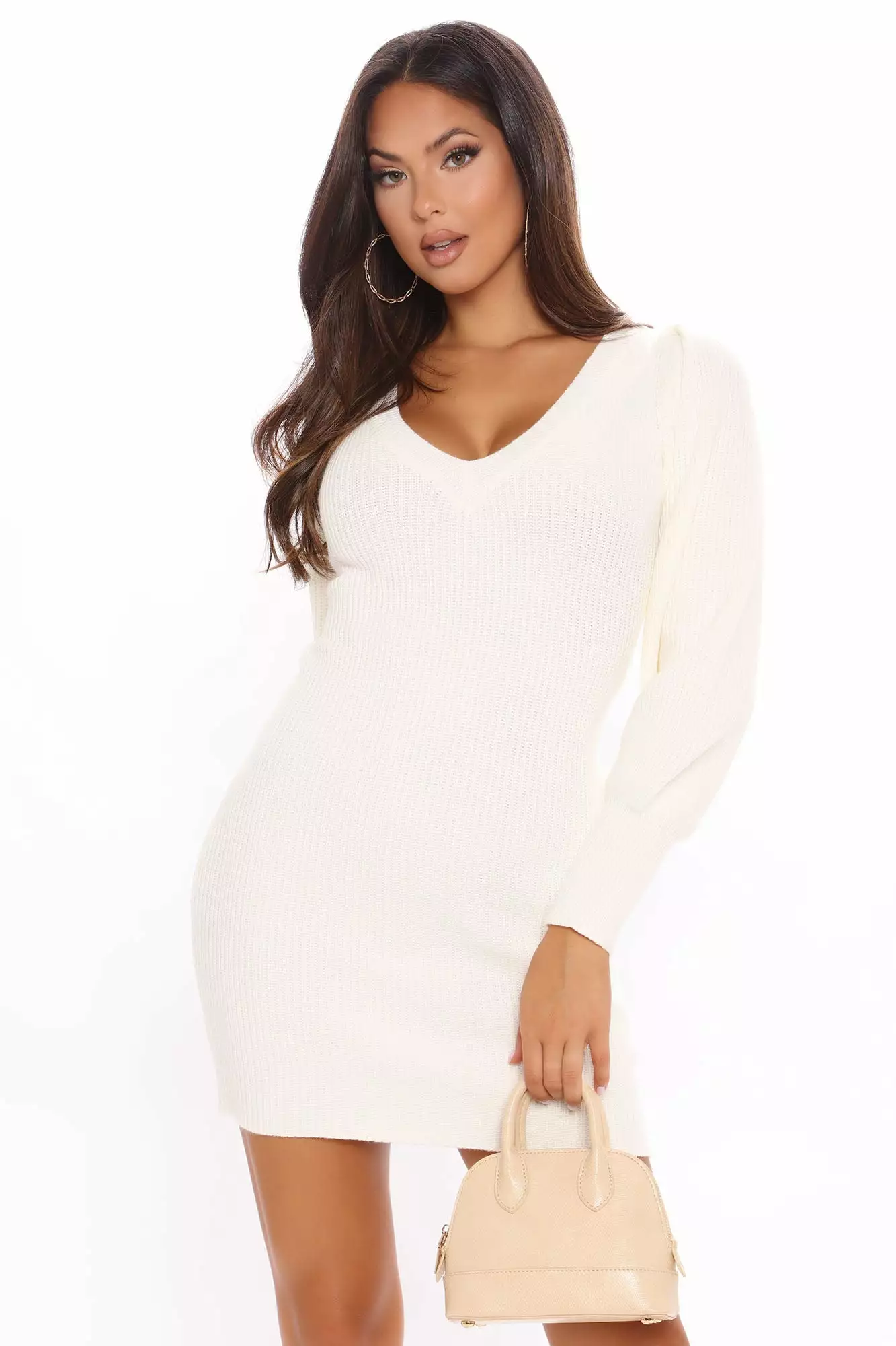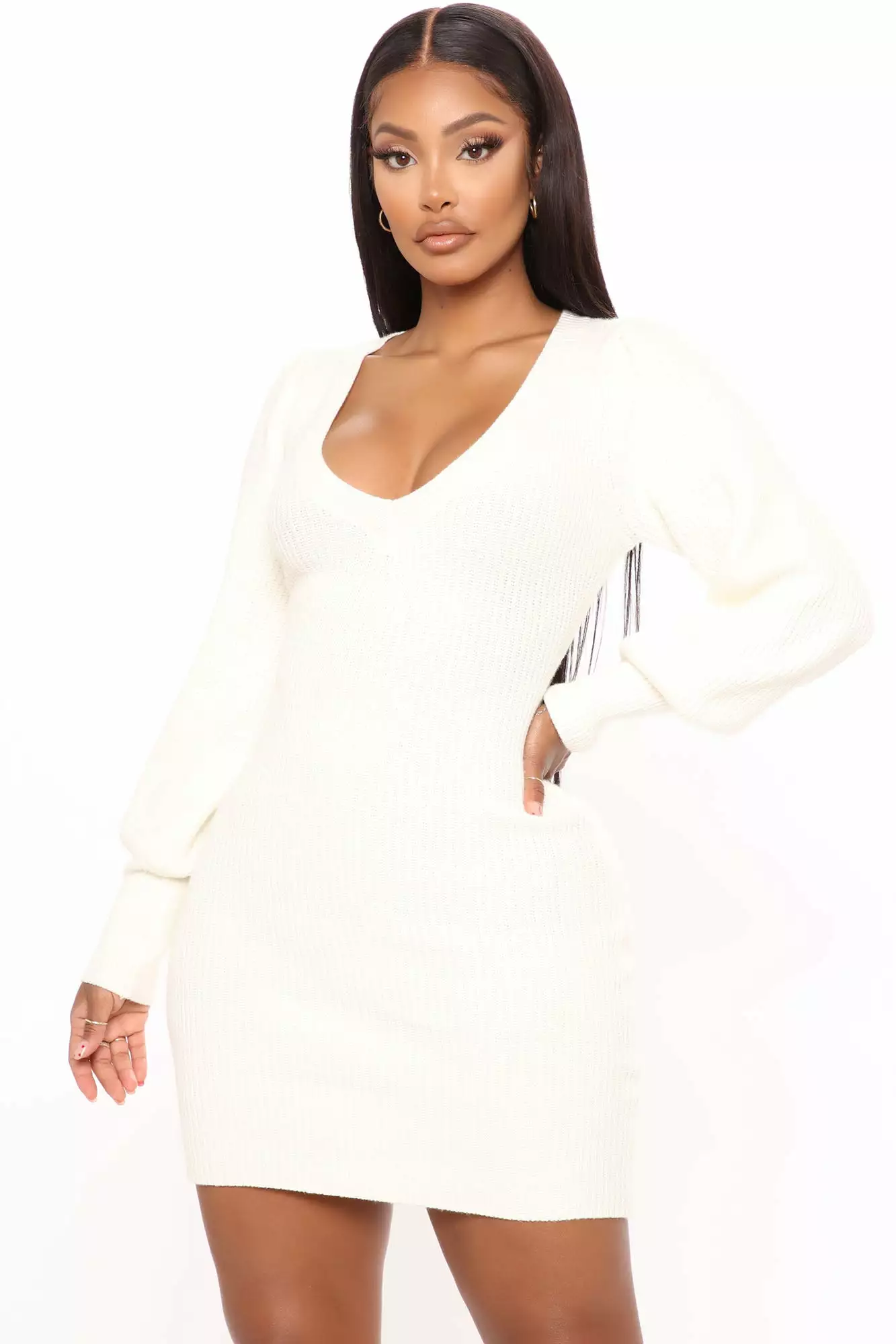 Fashion Nova Steph Sweater Mini Dress – Ivory
