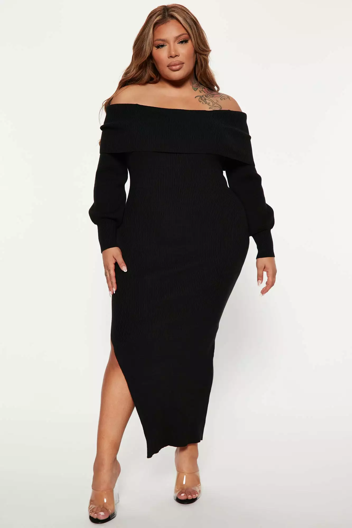 Fashion Nova Stormy Sweater Maxi Dress – Black