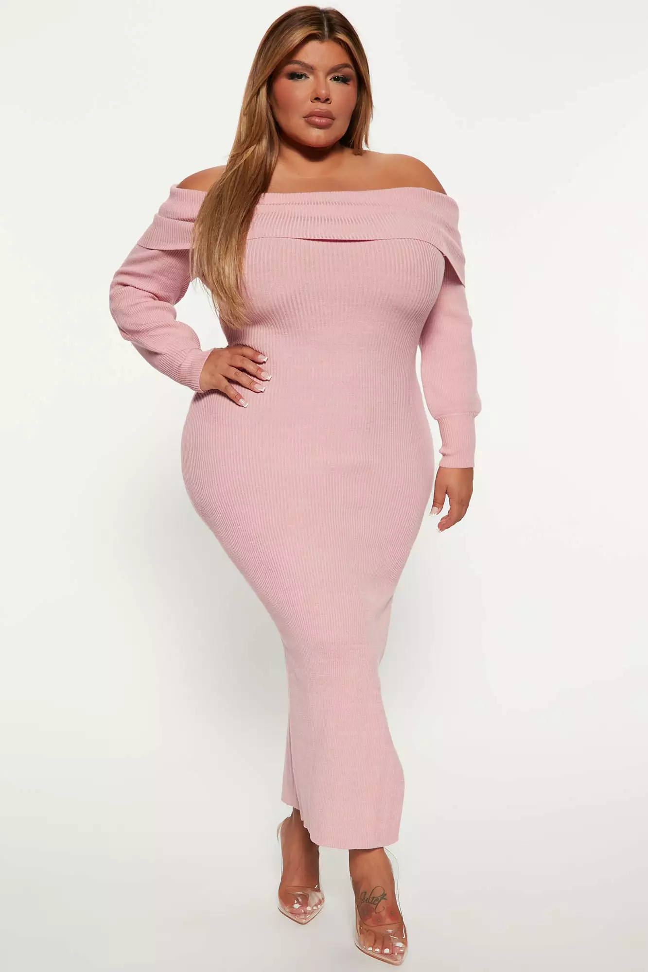 Fashion Nova Stormy Sweater Maxi Dress – Pink