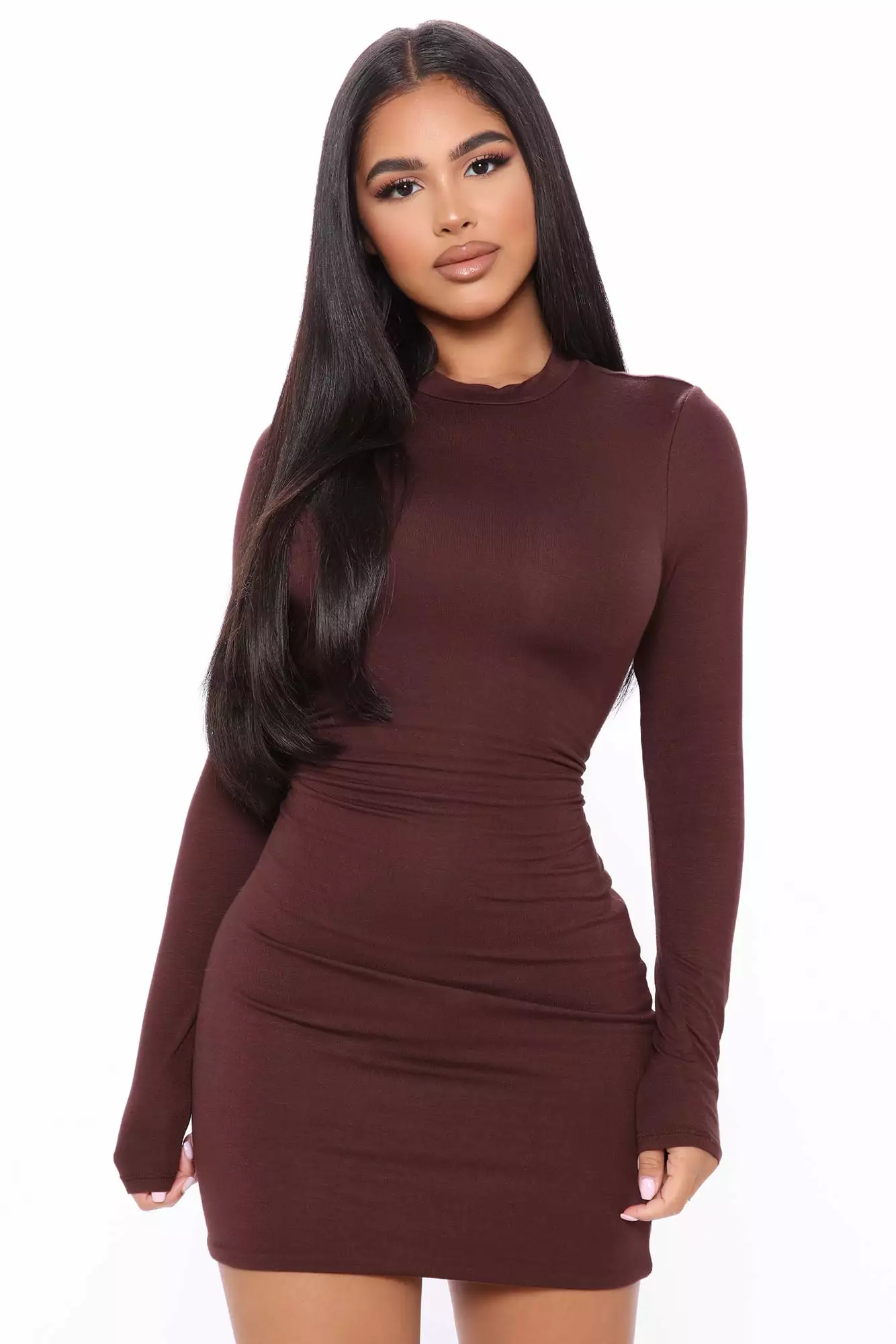 Fashion Nova Strolling Around Town Mini Dress – Brown