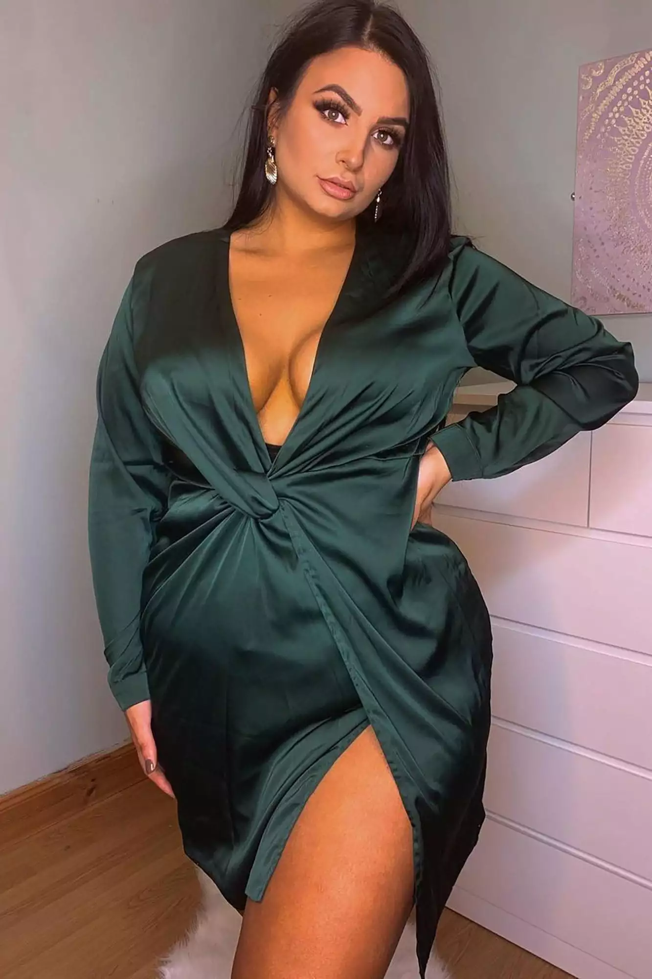 Knot your average mini dress. Show off what you’re working with in our Sugar Free Dress. This best-selling (and Kylie Jenner – Approved) satin mini features a deep V neckline, front slit and knot detail. Choose from a variety of colors, but be prepared to own them all.Â