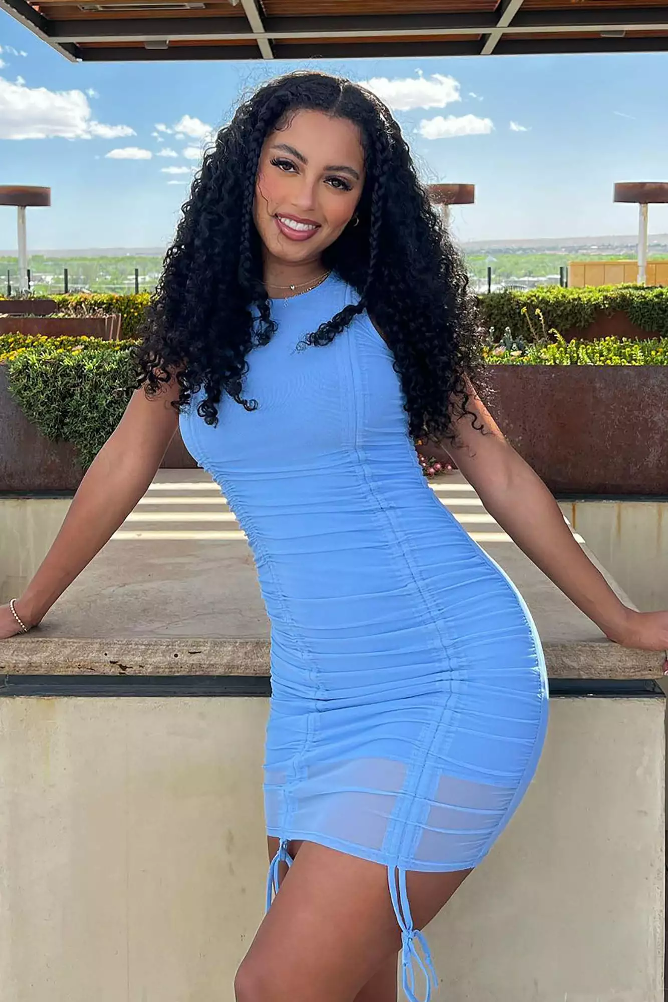 Fashion Nova Sweet Attitude Ruched Mesh Mini Dress – Blue
