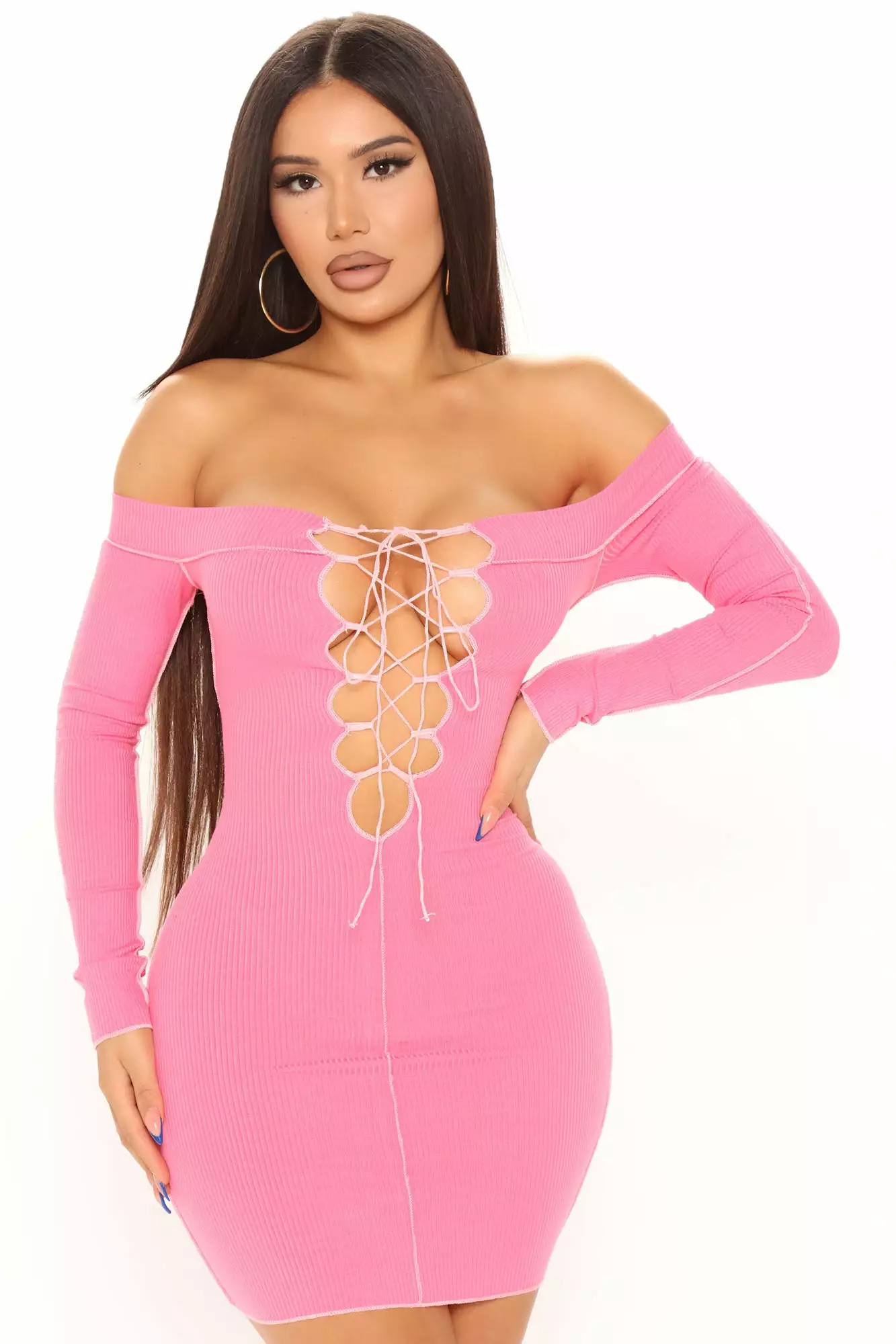 Fashion Nova Sweet Girl Lace Up Mini Dress – Hot Pink