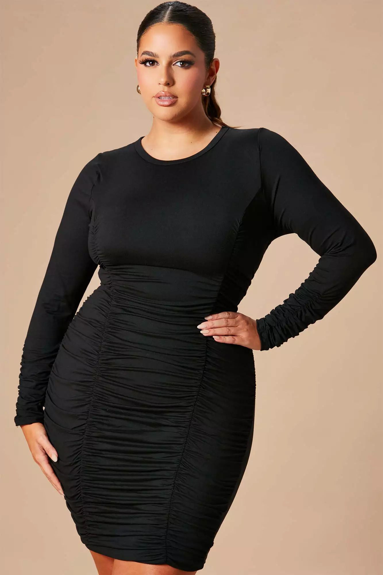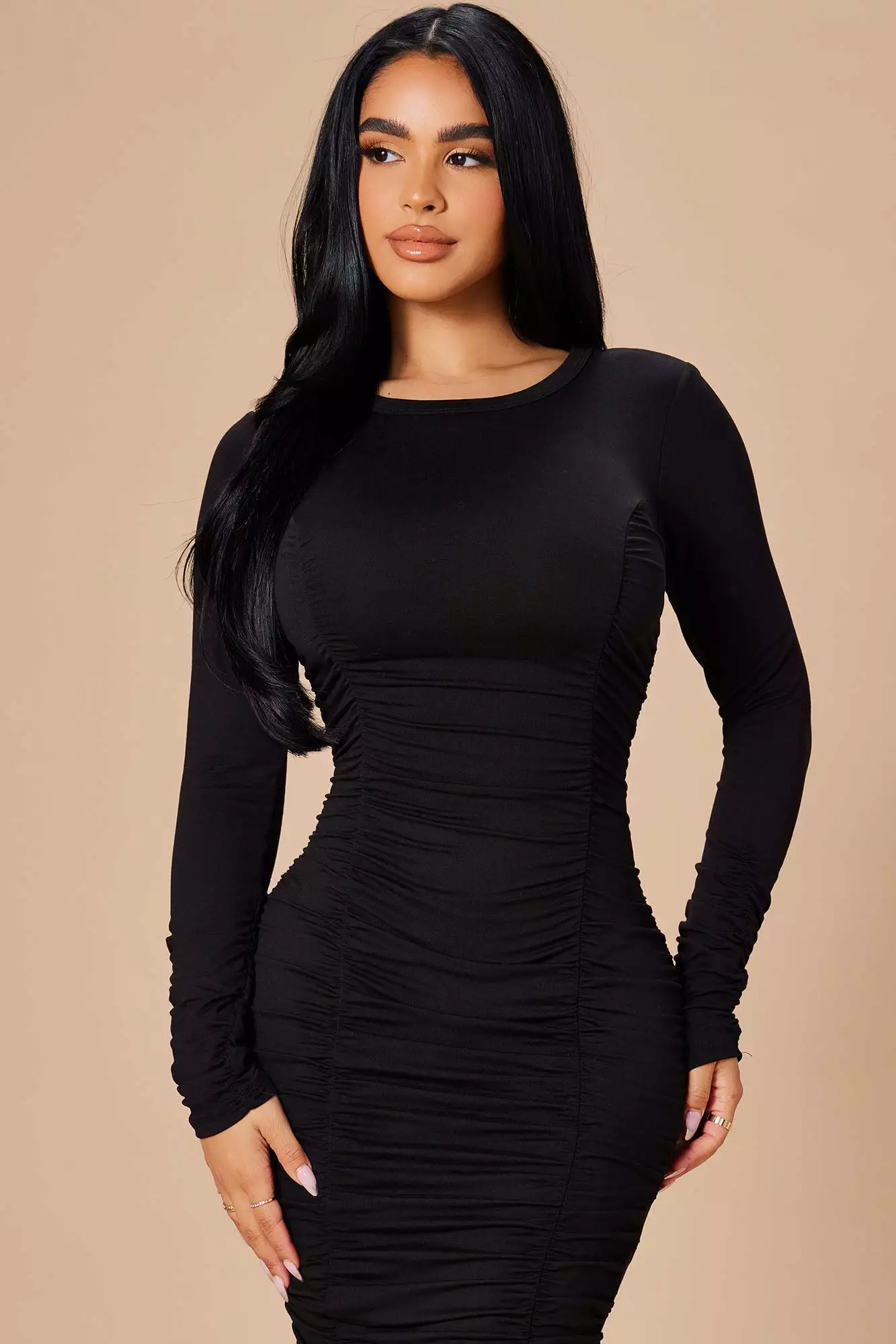 Fashion Nova Take Your Man Ruched Dress – Black
