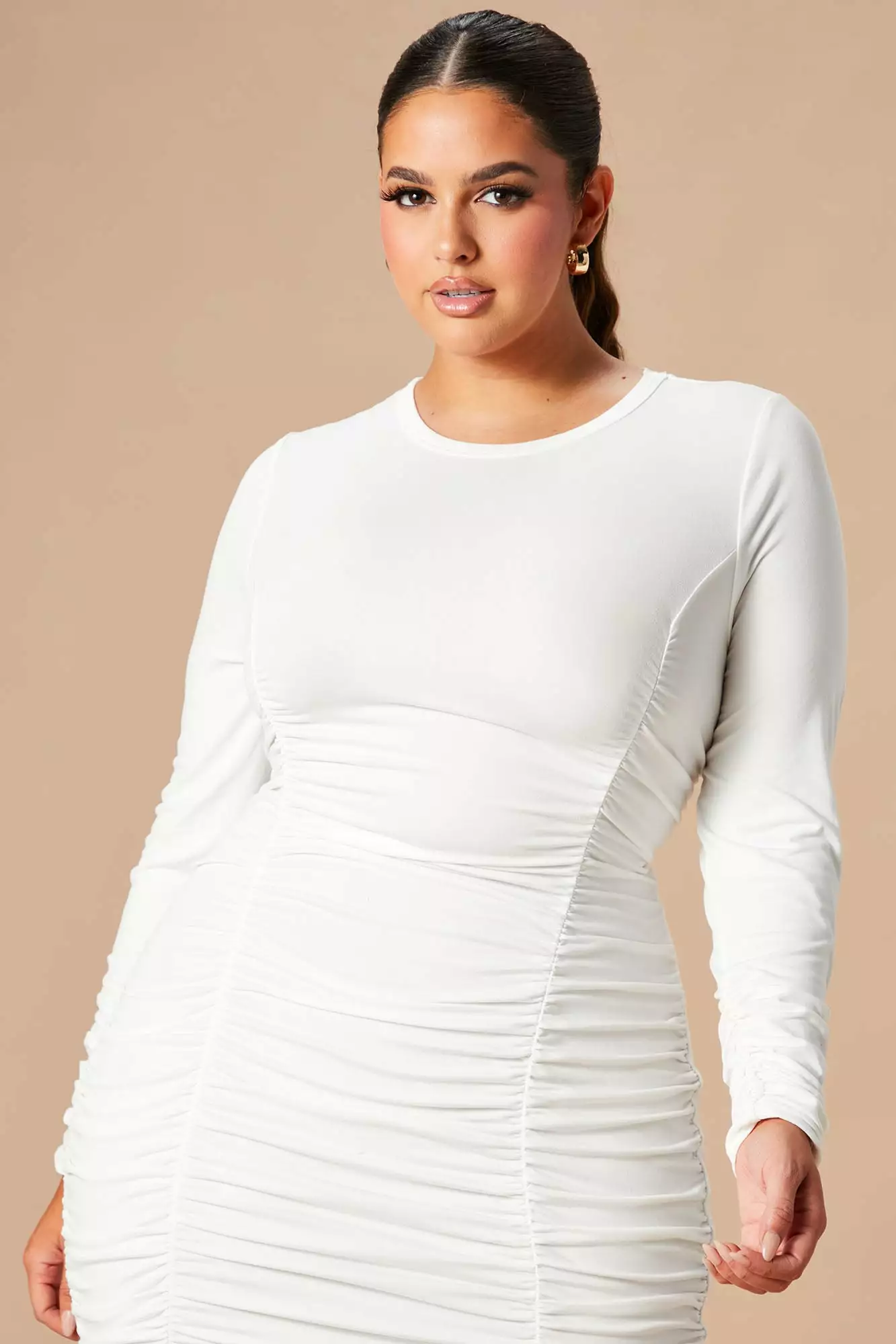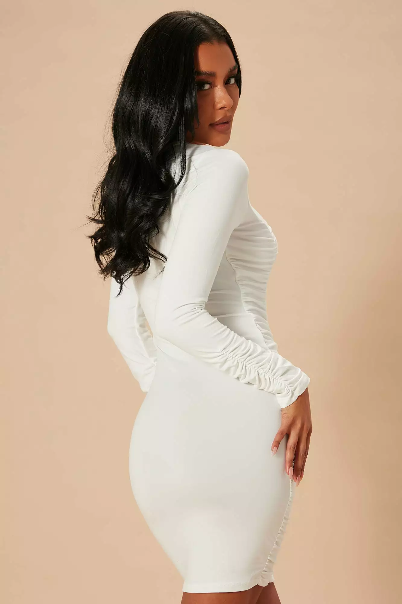 SKU: 1322297884796 Category: Sexy Dresses Tags: Club, color:White, ColorFam-White, detail:Ruched, Dresses, figure:Plus, july4, length:Mini, LWD