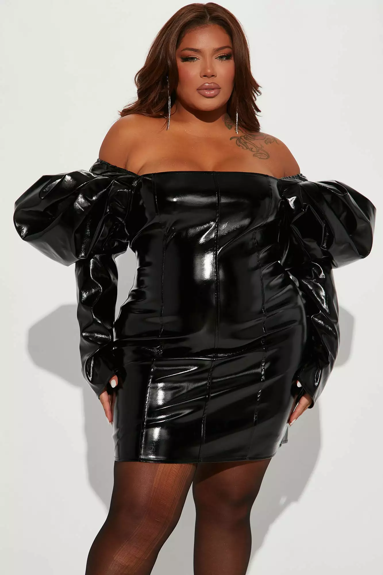 Fashion Nova The Drama Faux Leather Mini Dress – Black