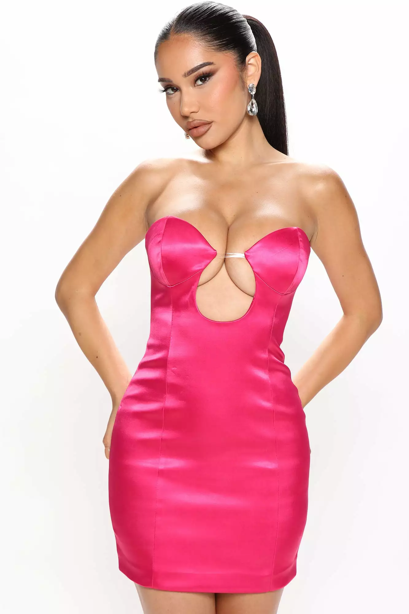 Fashion Nova The Dream Girl Satin Mini Dress – Fuchsia