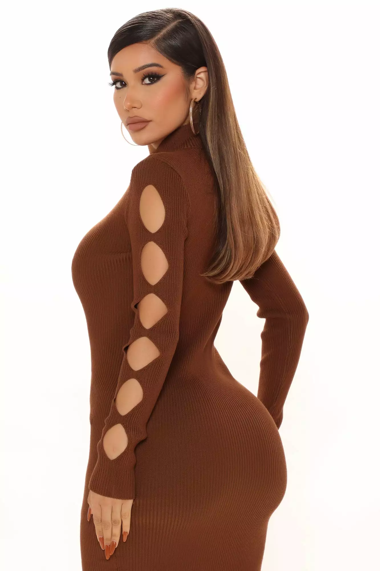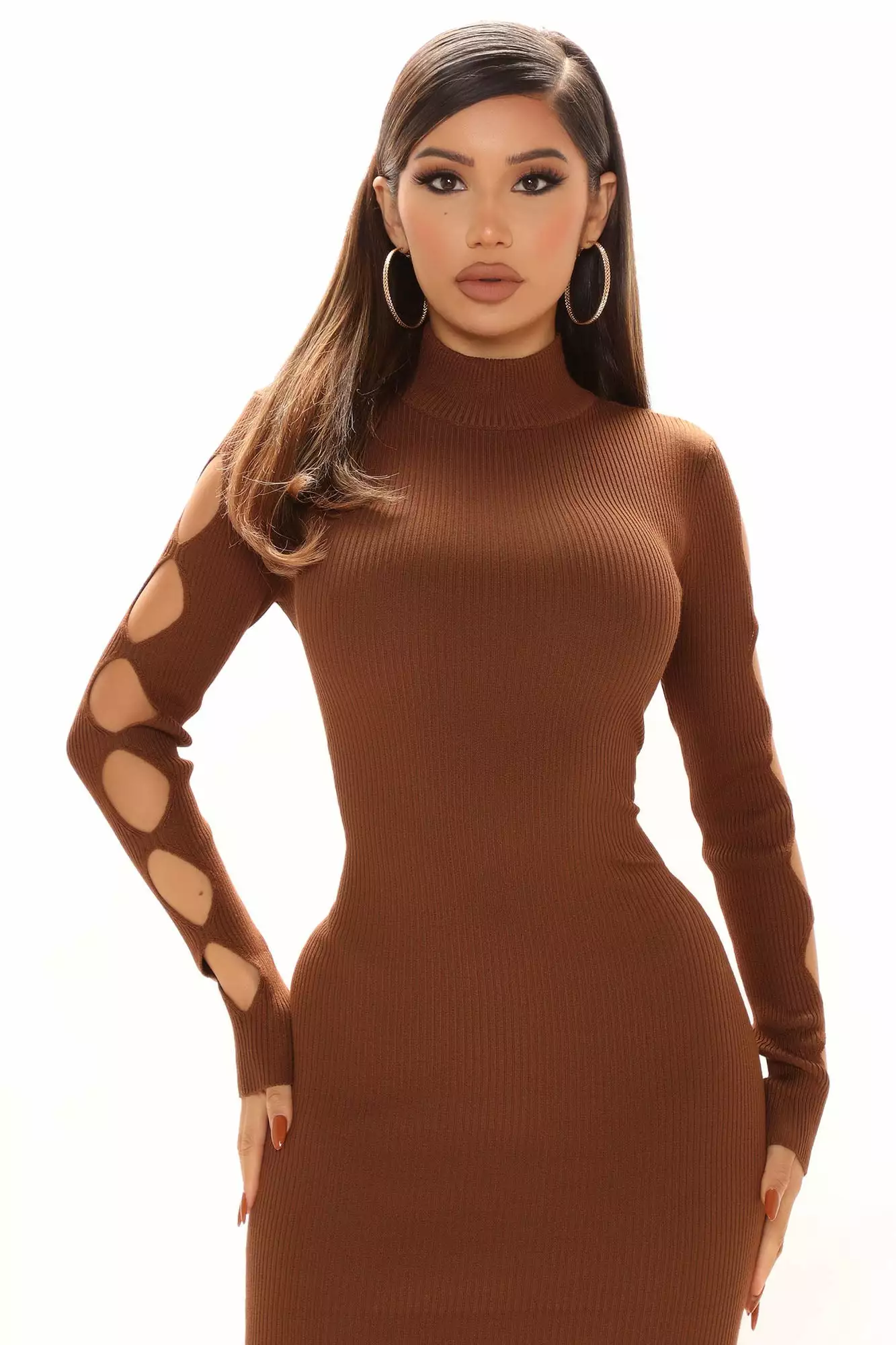 Fashion Nova There For You Sweater Midi Dress – Cognac