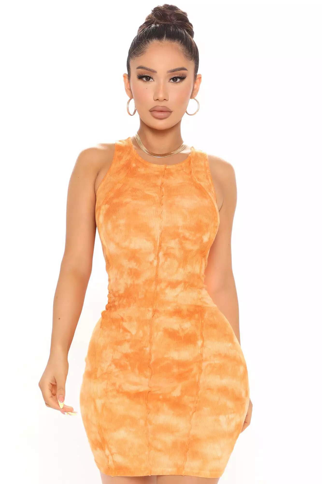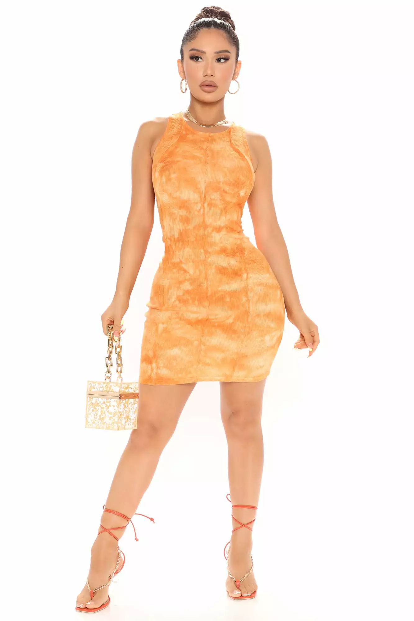 Fashion Nova Tie Dye Fun Mini Dress – Orange/combo