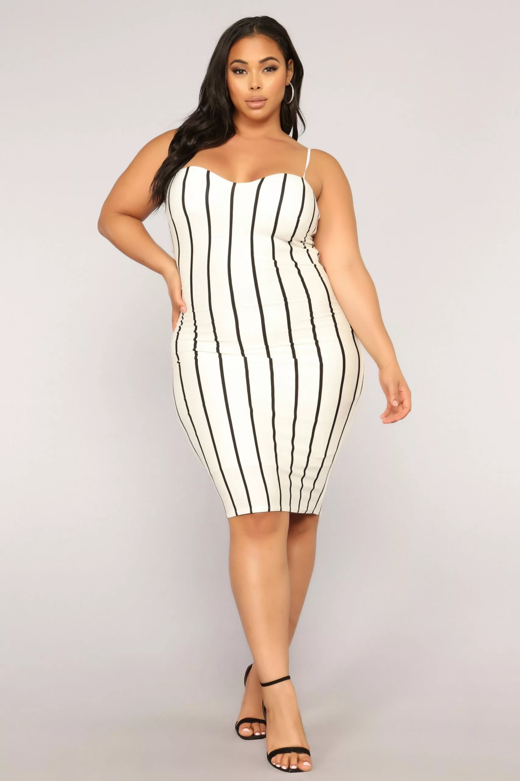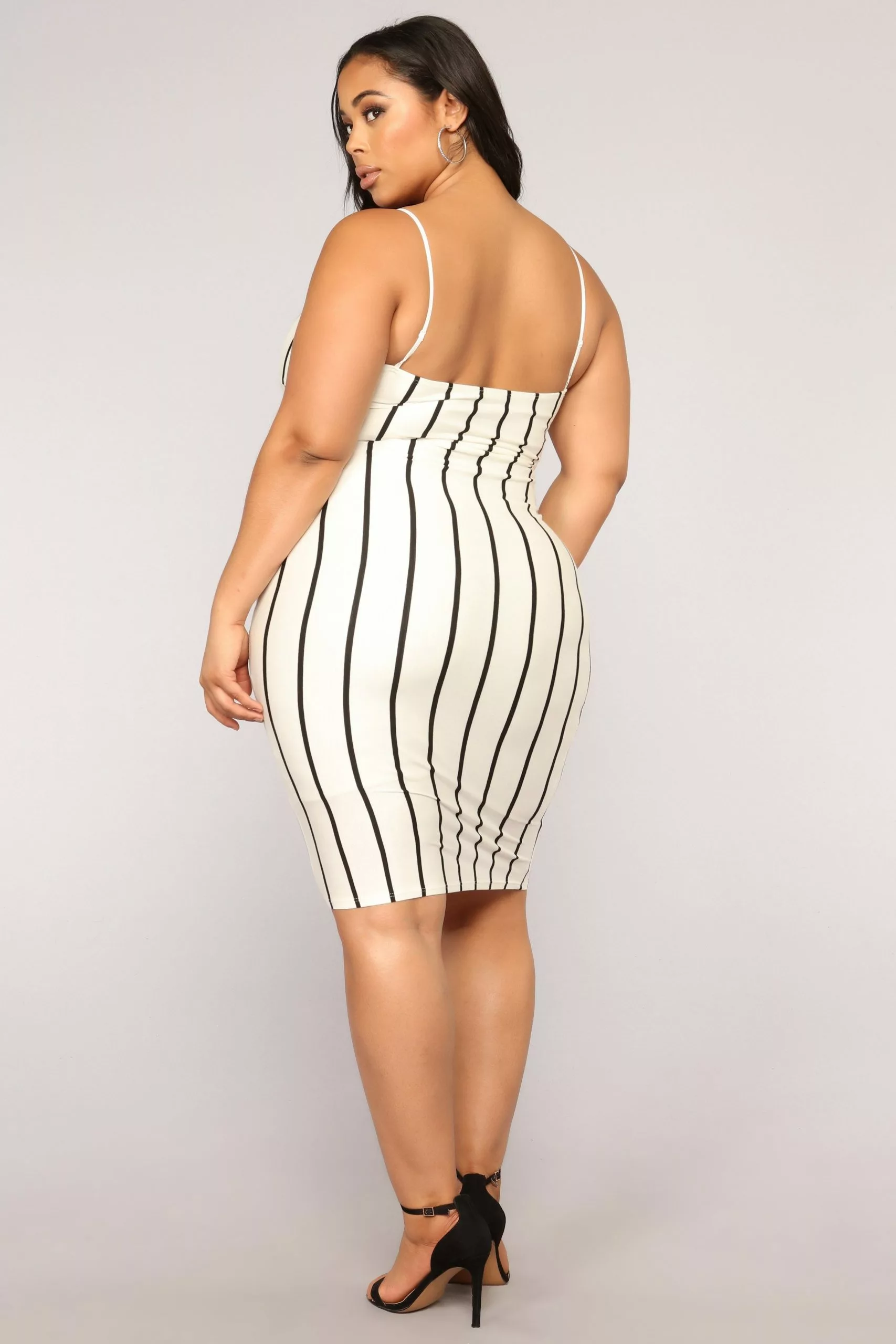 Fashion Nova Twerkin’ And Workin’ Stripe Dress – White