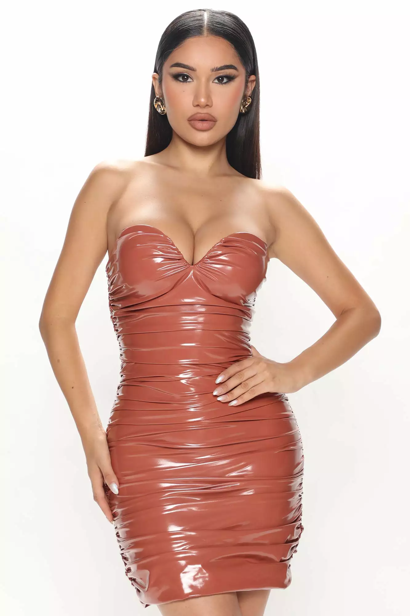 Fashion Nova Vinyl Collection Mini Dress – Brown