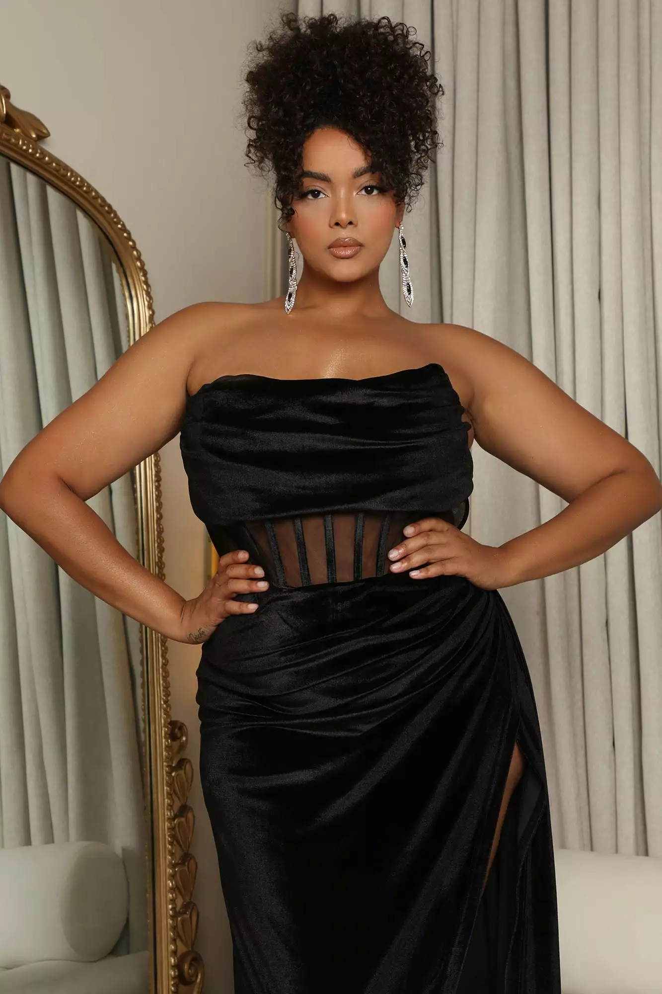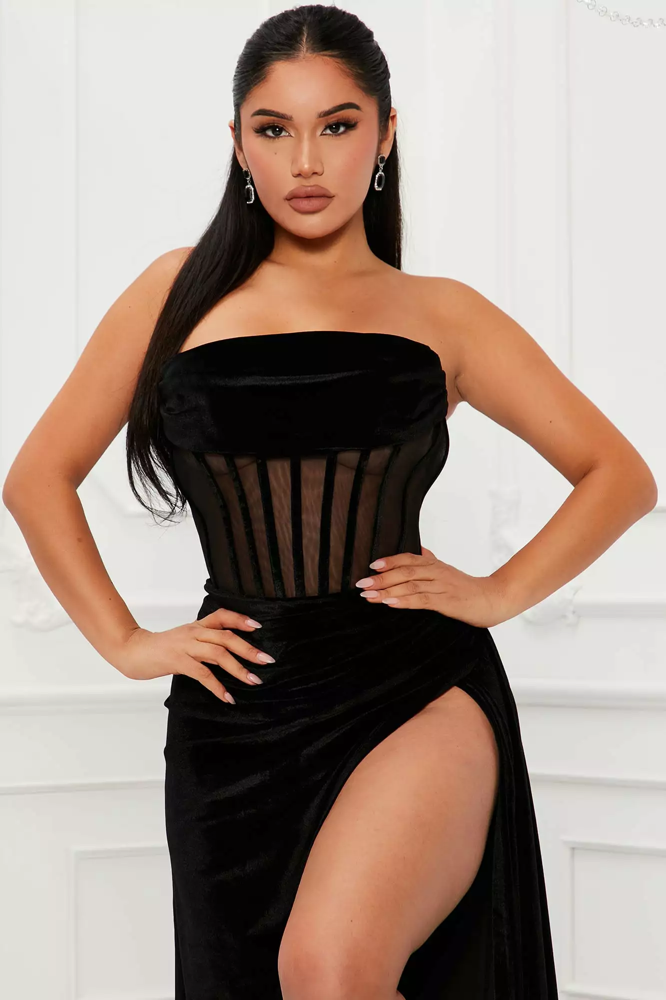 Fashion Nova Vivi Velvet Maxi Dress – Black