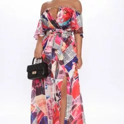 Fashion Nova Vogue Moment Printed Maxi Dress – Pink/combo