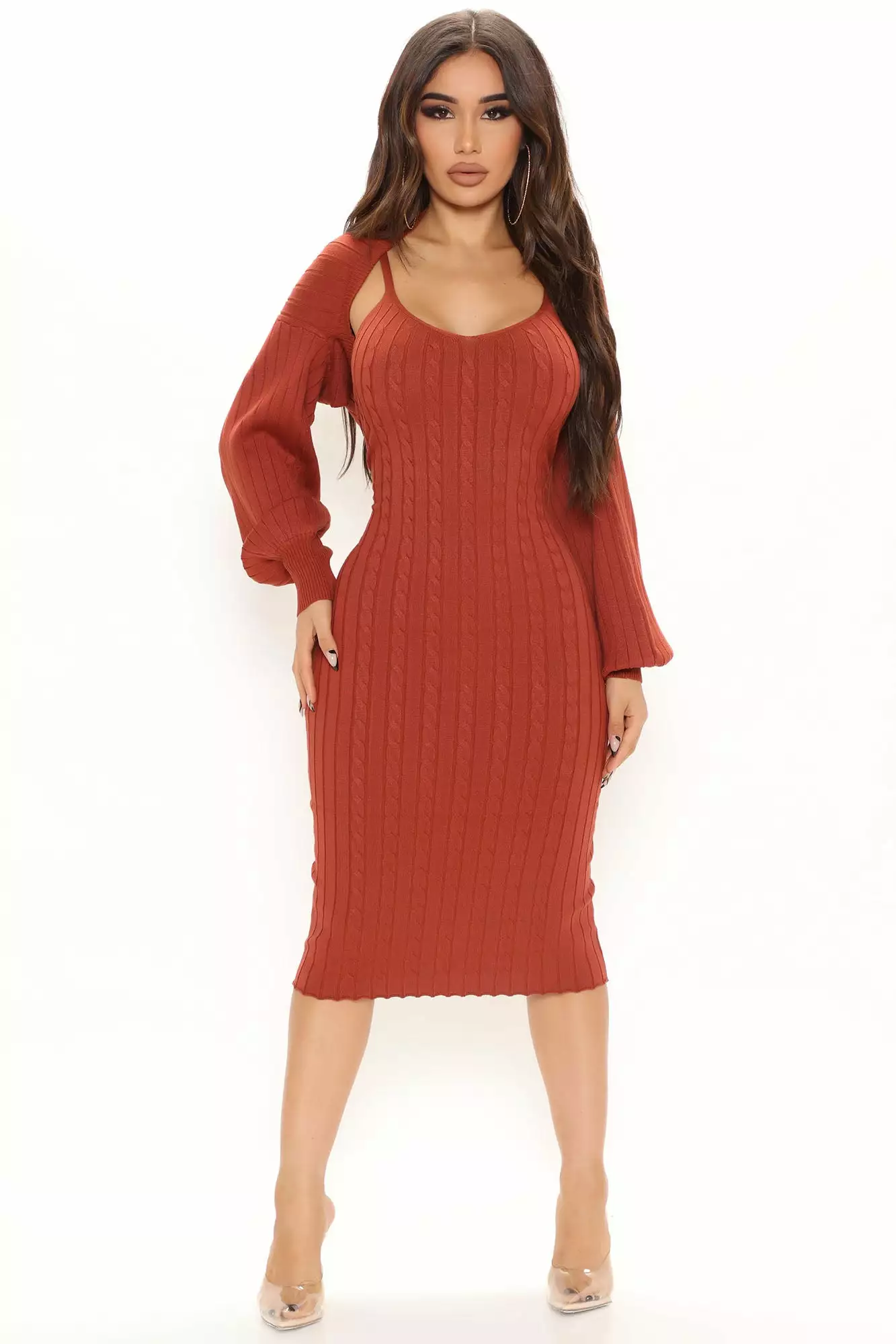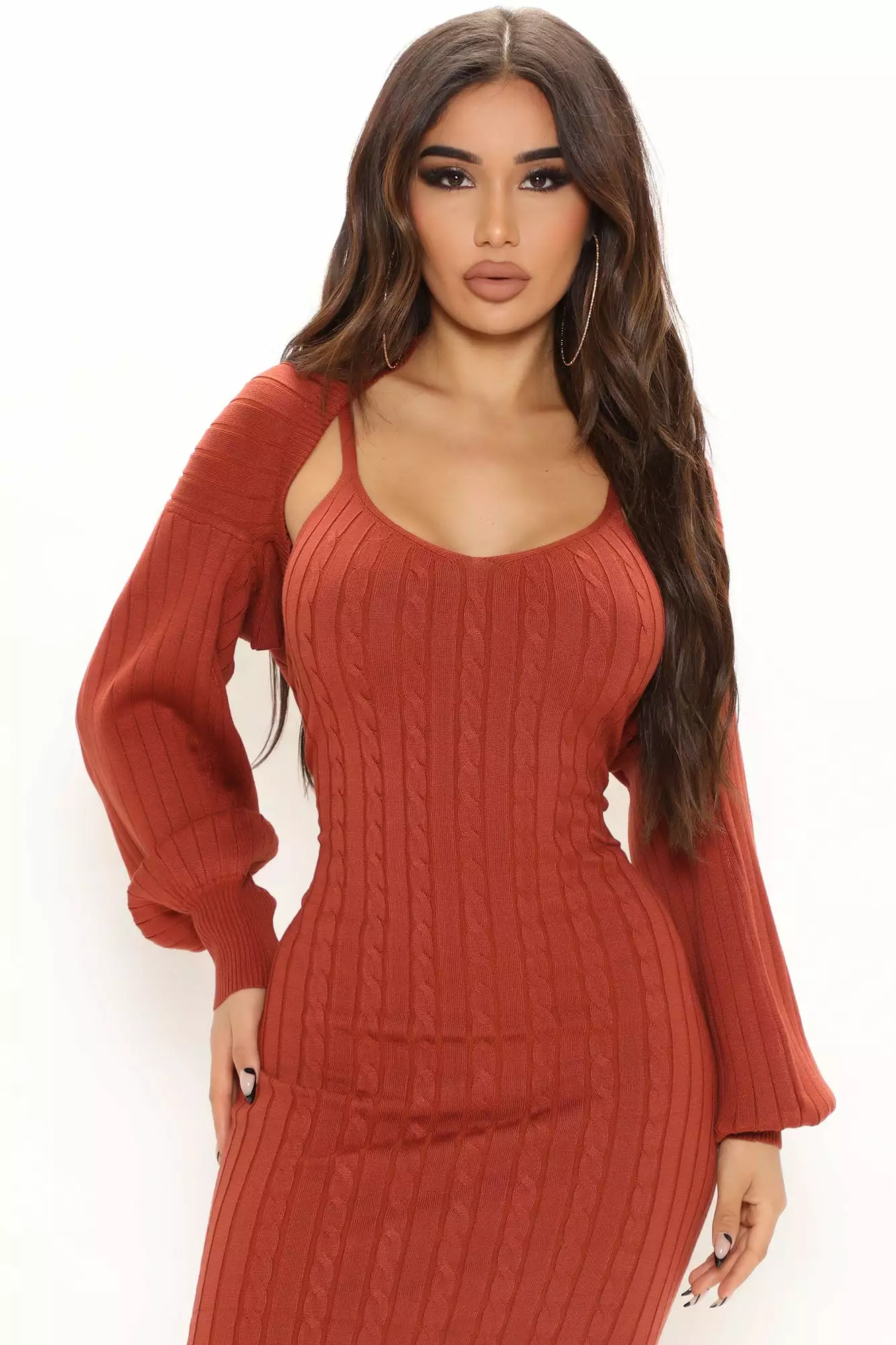 Be the first to review “Fashion Nova Warm Wishes Dress Set – Rust” Cancel reply