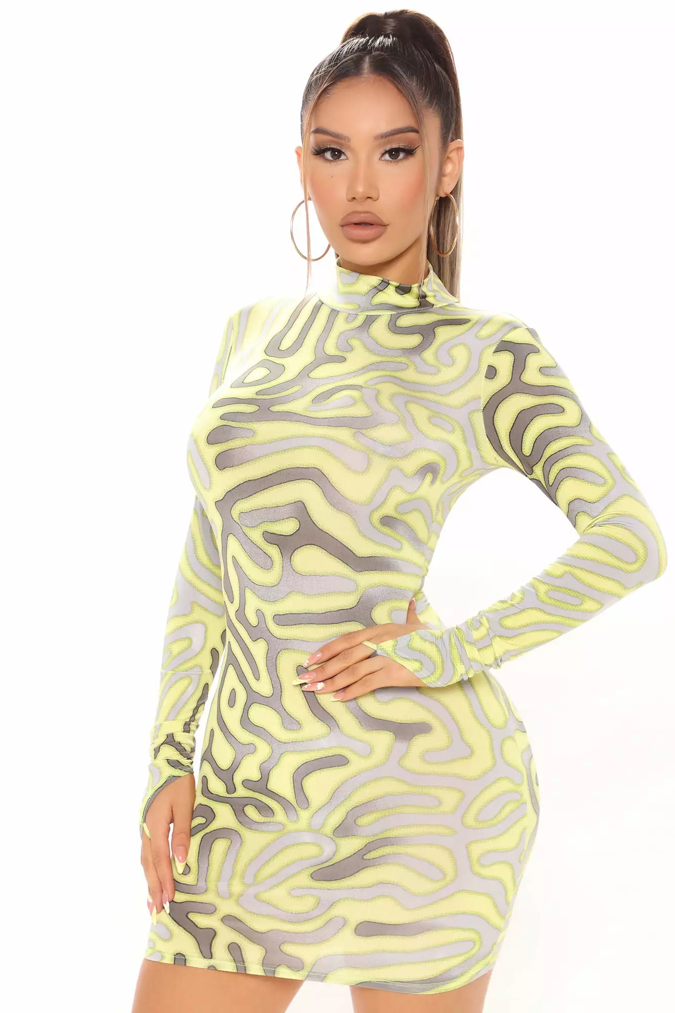 Fashion Nova Well Versed High Neck Mini Dress – Yellow/combo