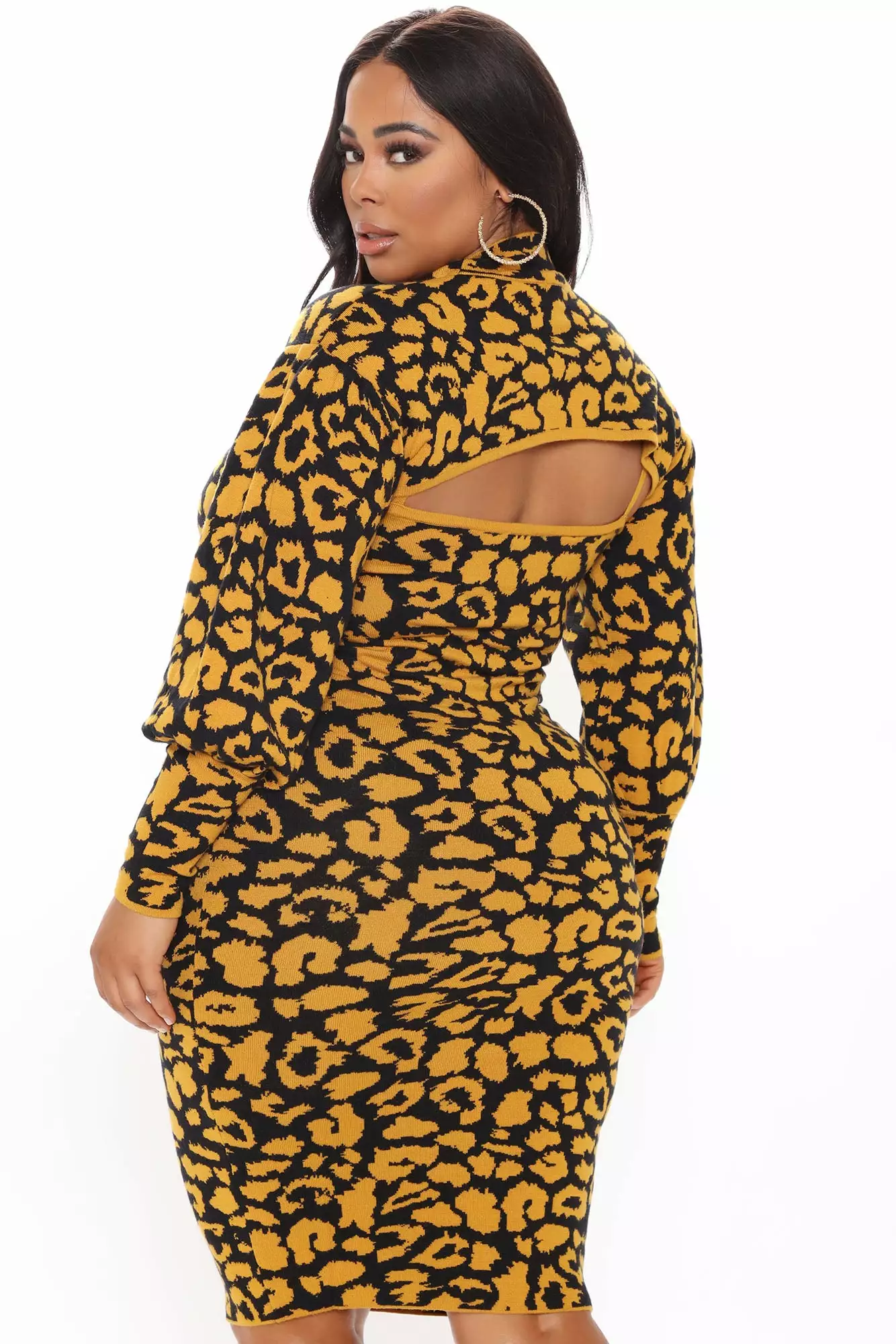Fashion Nova Wild Attitude Leopard Sweater Dress Set – Black/Yellow