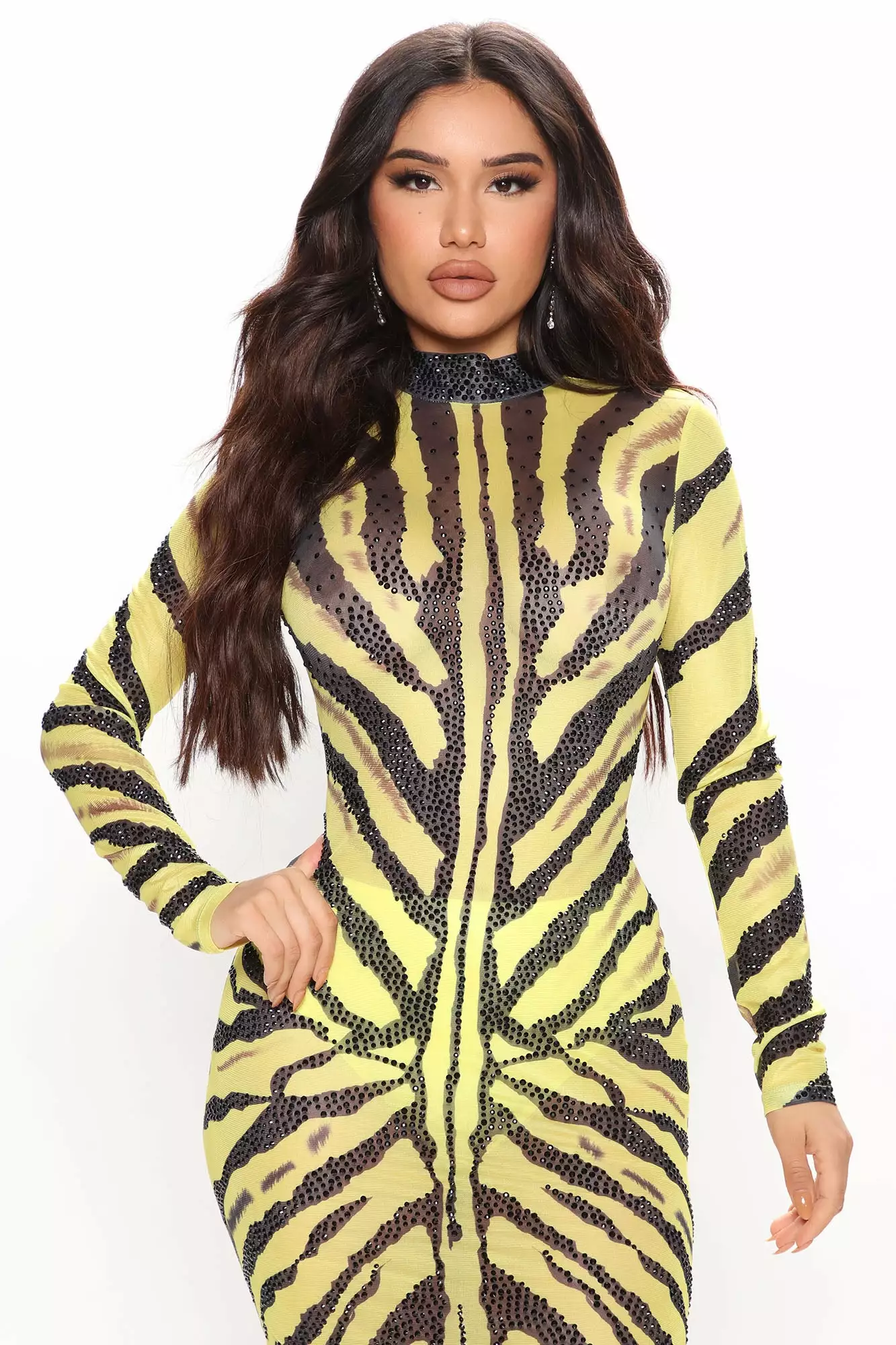 Fashion Nova Wild Girl Mesh Maxi Dress – Black/combo