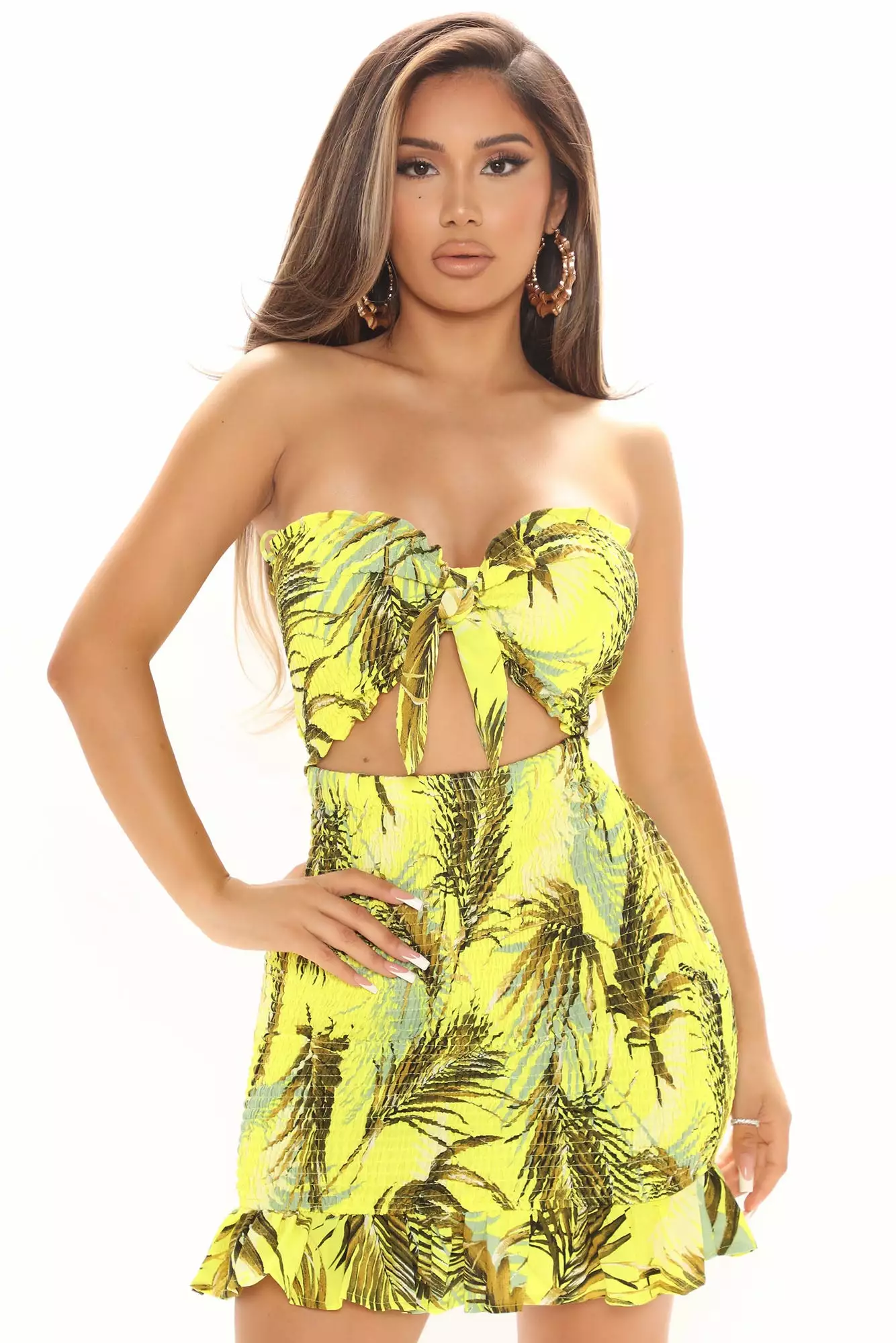 Fashion Nova Willa Crinkled Mini Dress – Yellow/combo