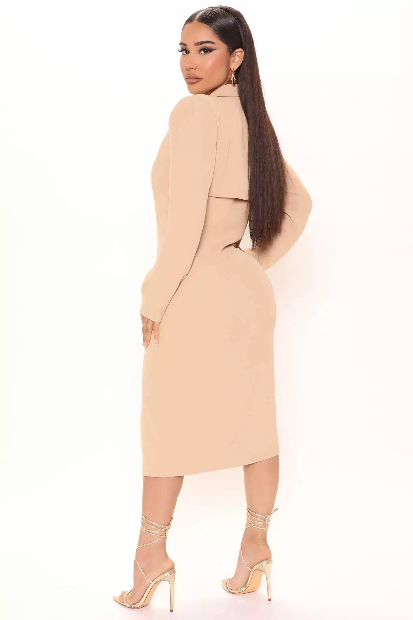 Fashion Nova Work For Me Blazer Midi Dress – Taupe