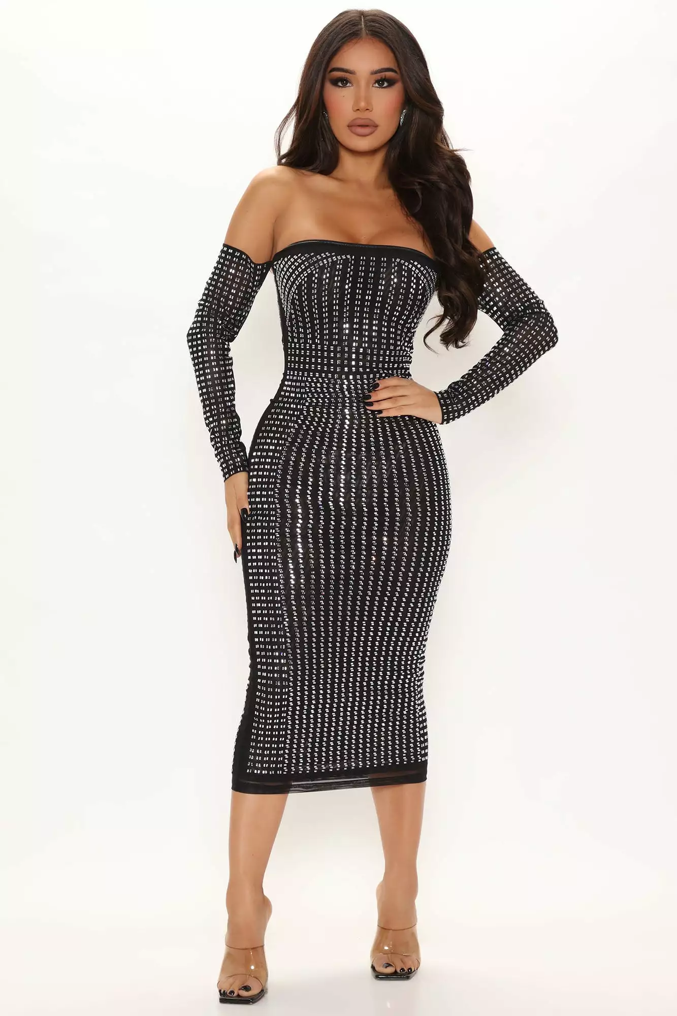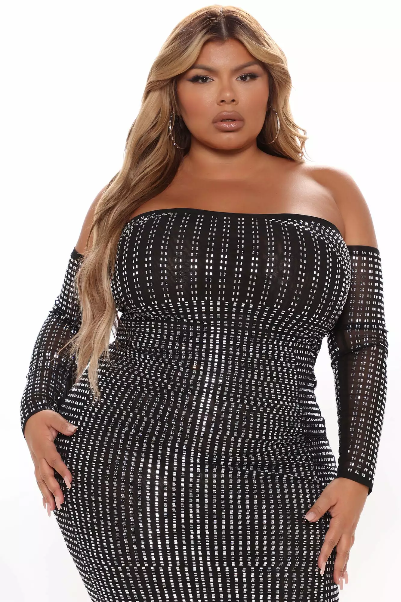 Fashion Nova Working On It Off Shoulder Midi Dress – Black