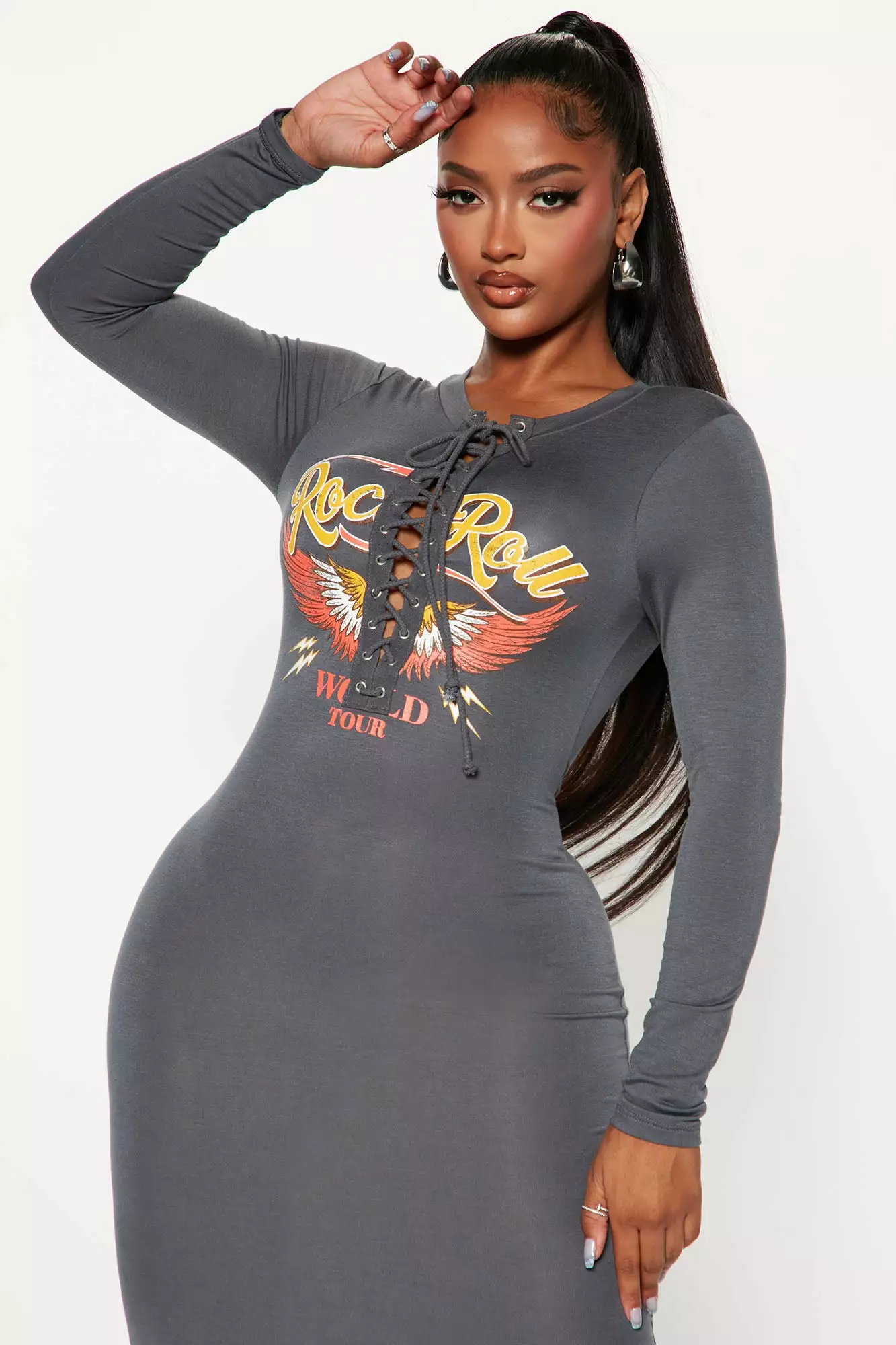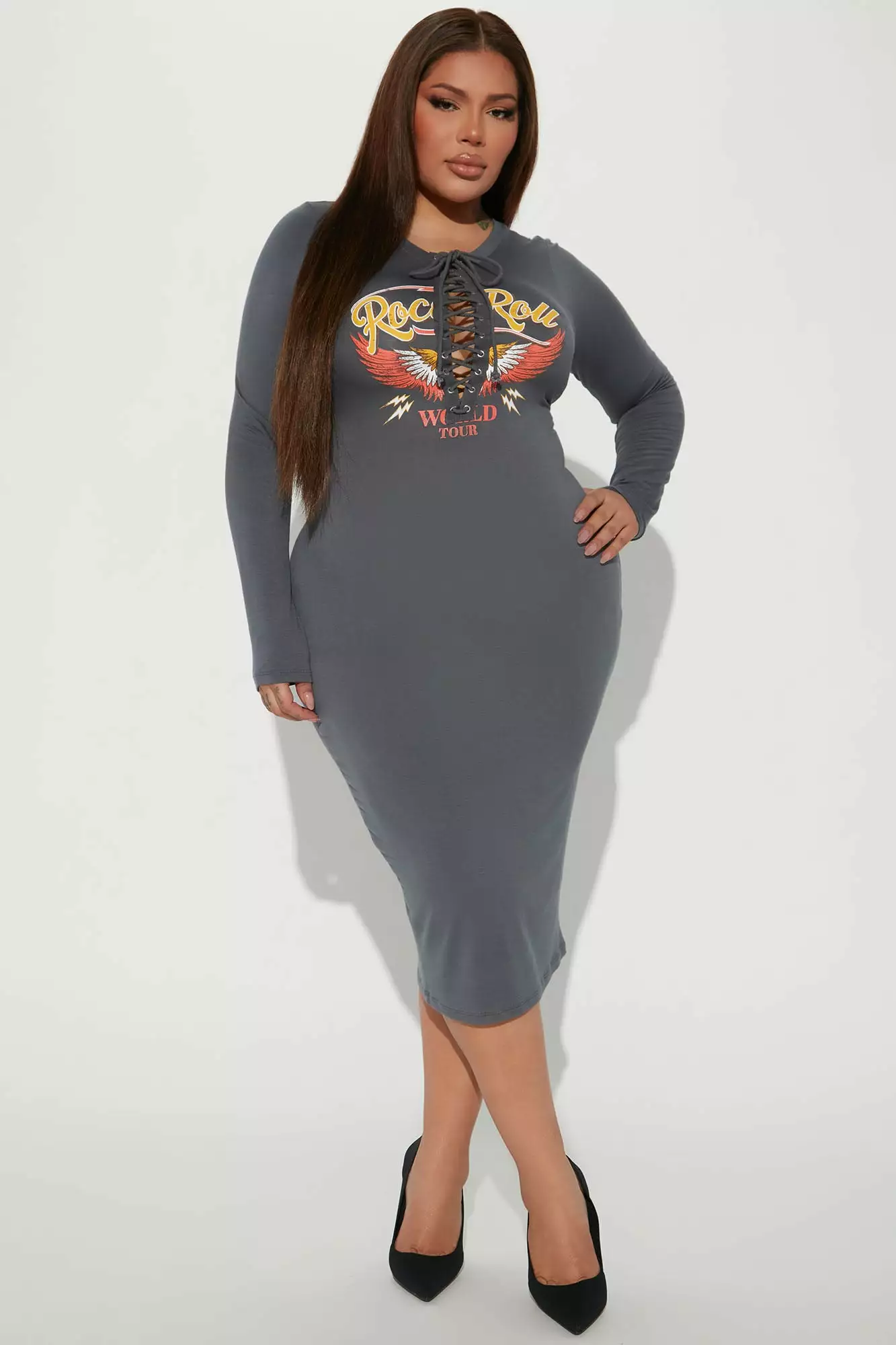 Fashion Nova World Tour Midi Dress – Slate Blue
