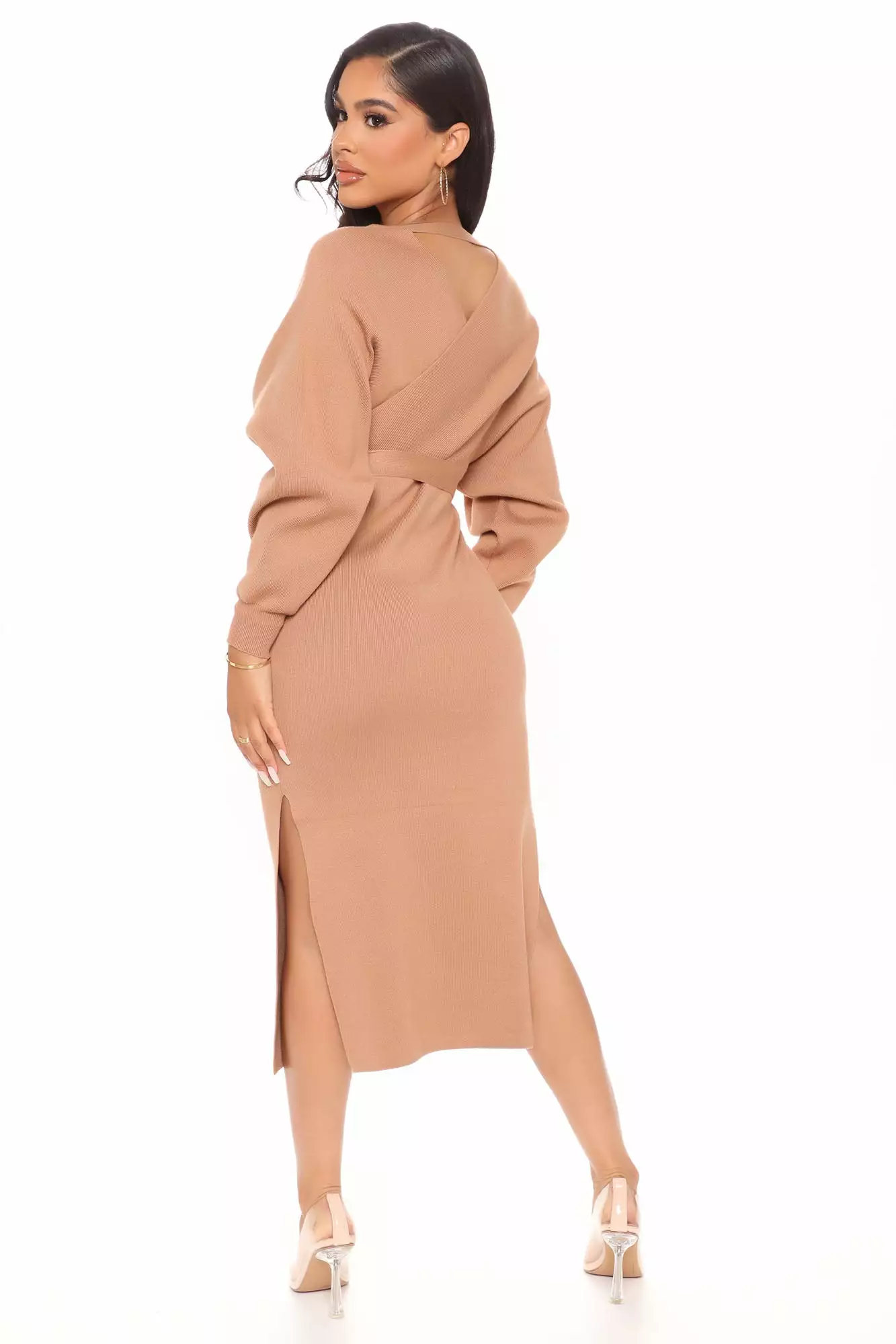 Fashion Nova Wrapped All Around Me Midi Sweater Dress – Taupe