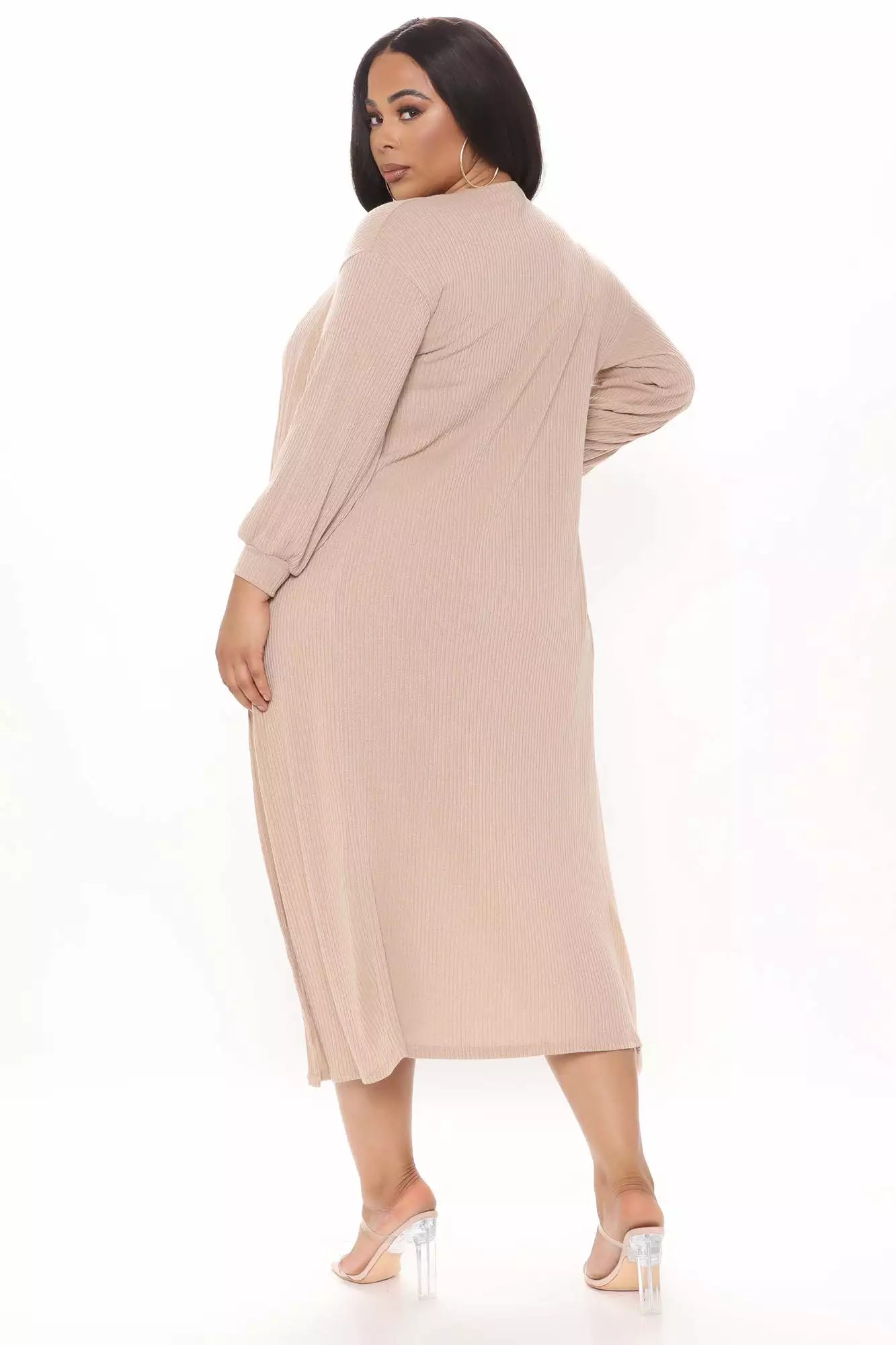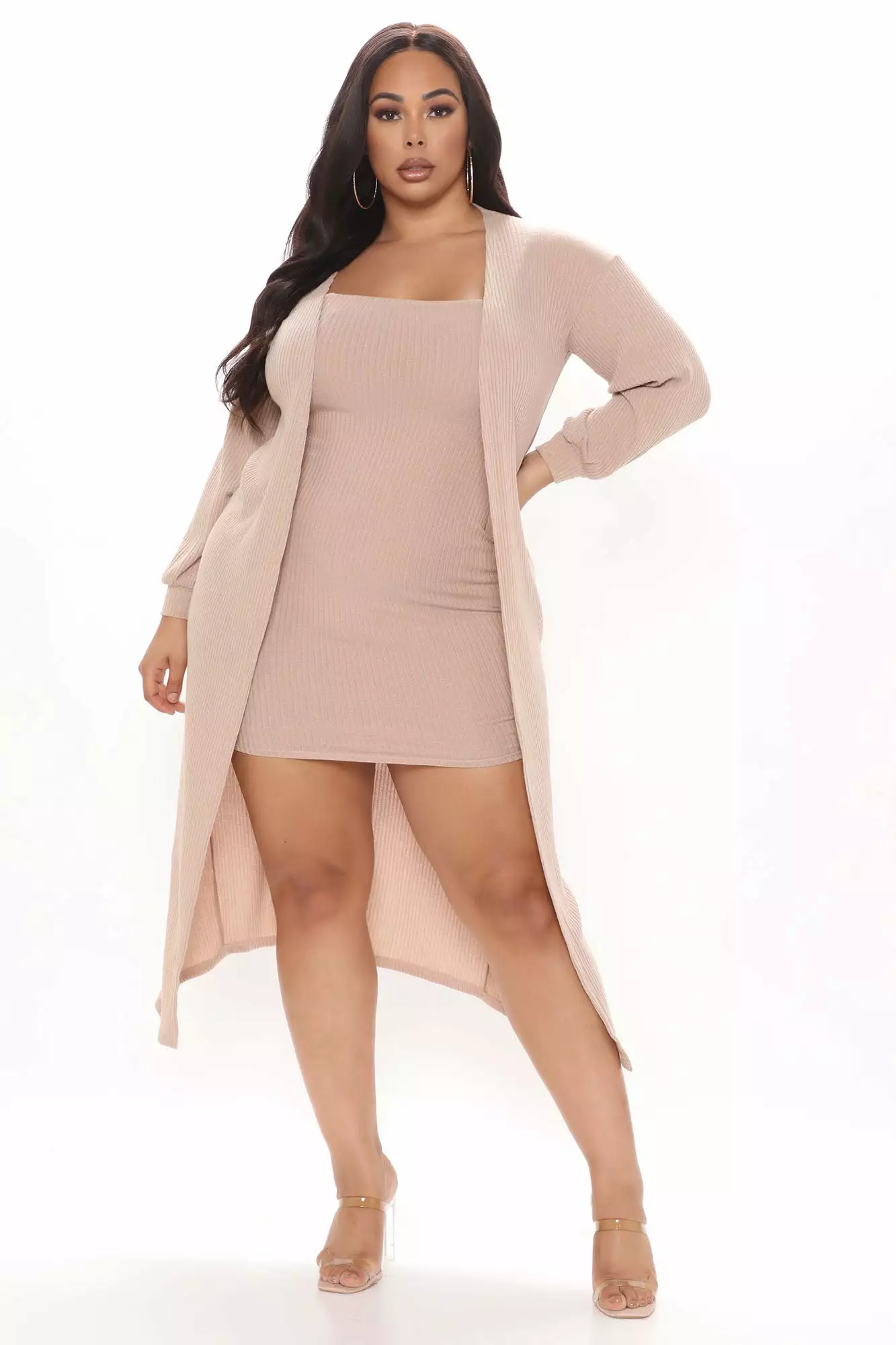 Fashion Nova Wrapped In Warmth Dress Set – Taupe