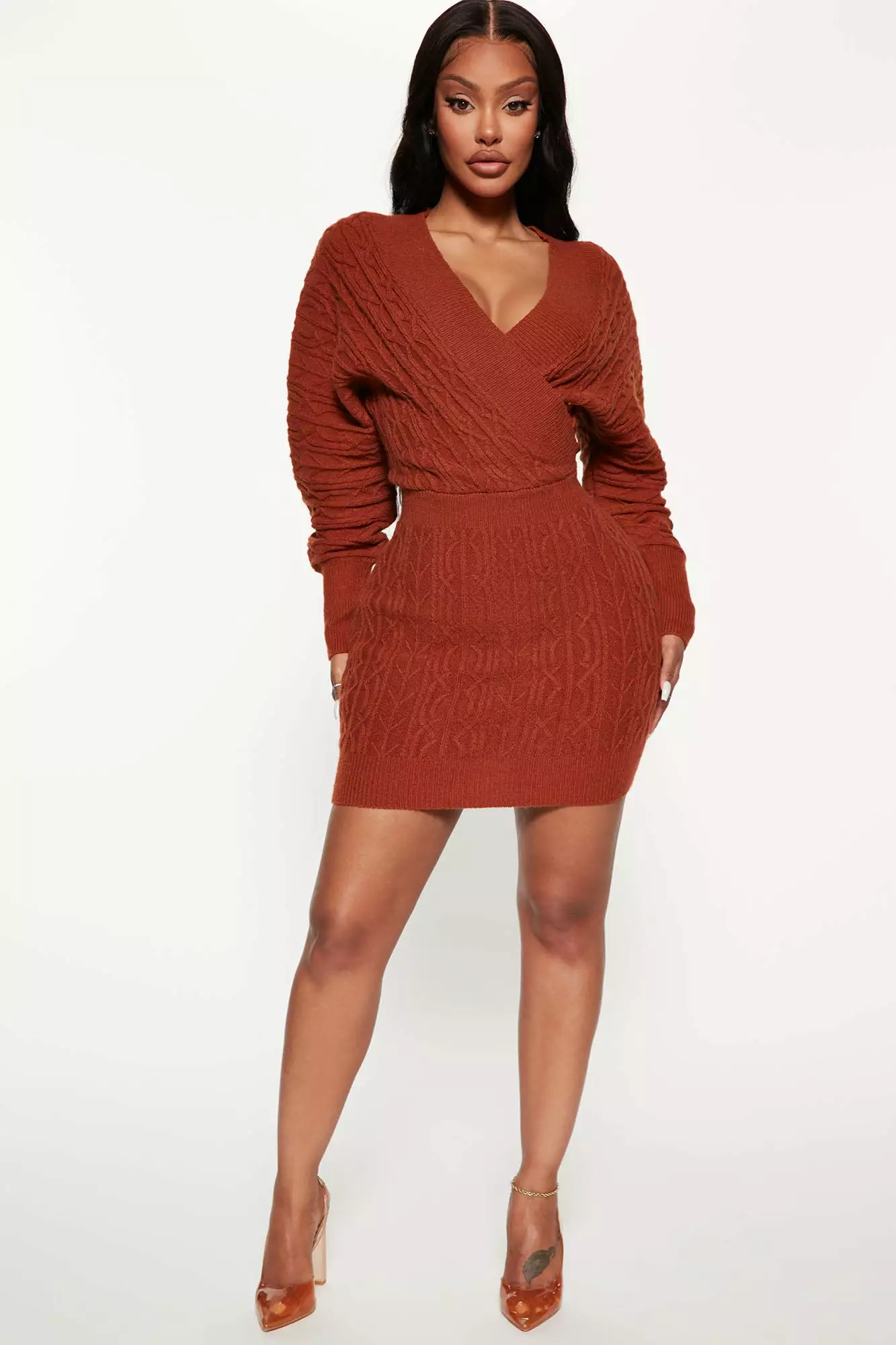 Fashion Nova Zairah Sweater Mini Dress – Camel